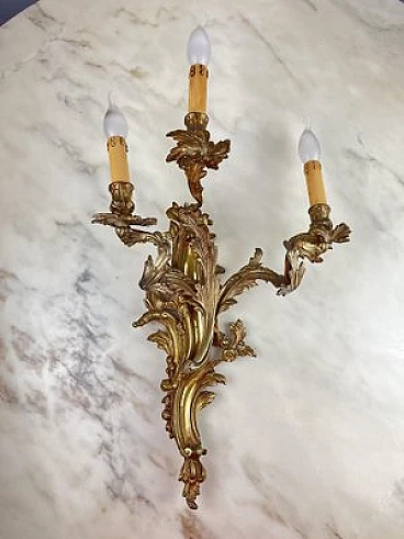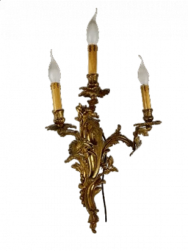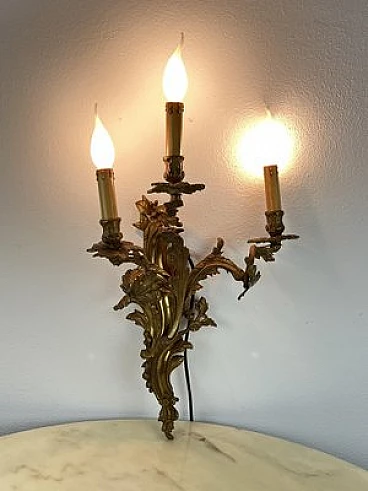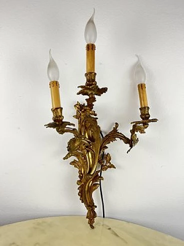 Three-light bronze wall sconce, 1960s