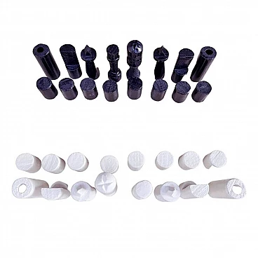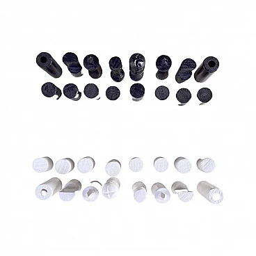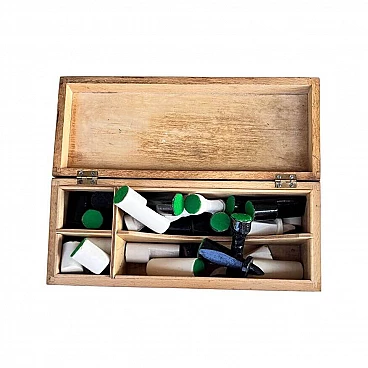 Handmade wooden chess set in a walnut box, made in the second half of the 20th century, probably in Denmark. Complete chess set, hand-made using amateur methods. Minimalist-style chess set in turned wood, hand-carved. A unique piece in the sense that it was made in a single copy, probably by a later user. The chess pieces are in excellent condition, complete and packed in a beautiful walnut-lined box. Box dimensions: height 10 cm|width 27 cm|depth 11 cm. Box dimensions in inches: height 3.9 in|width 10.6 in|depth 4.3 in.