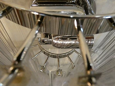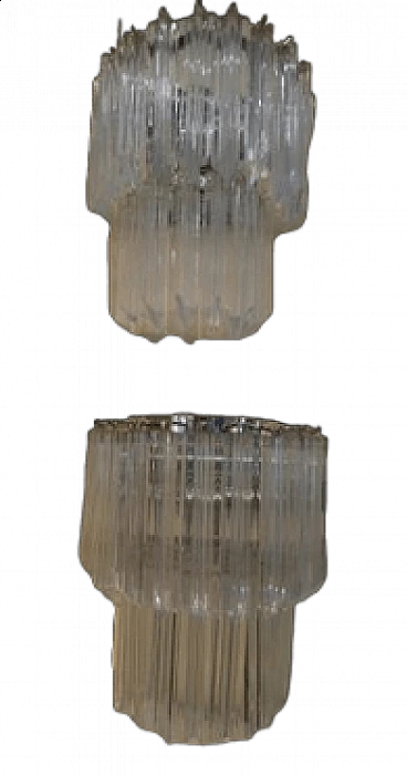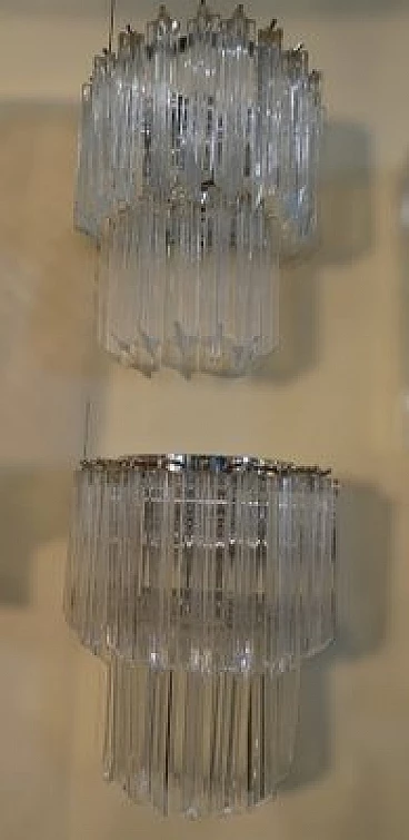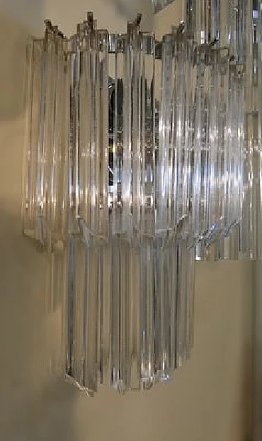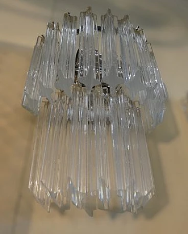 Pair of wall lights by Venini, 1960s. Chromed metal structure and transparent Murano glass tubular elements with four faceted sides. The structure has been rechromed. Original box available.
