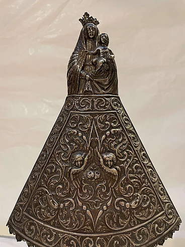 Sculpture of Madonna and Child in chiseled silver by Tarongi, 18th century
