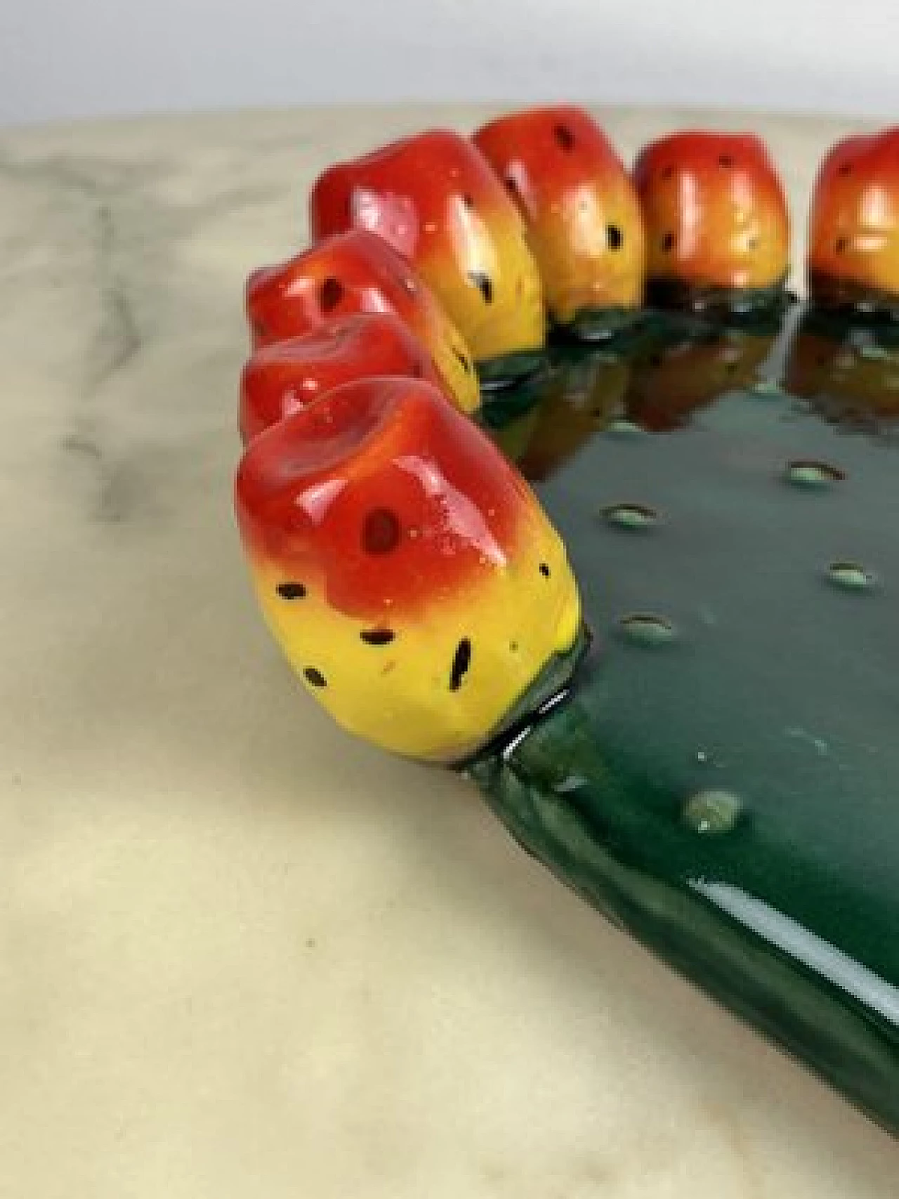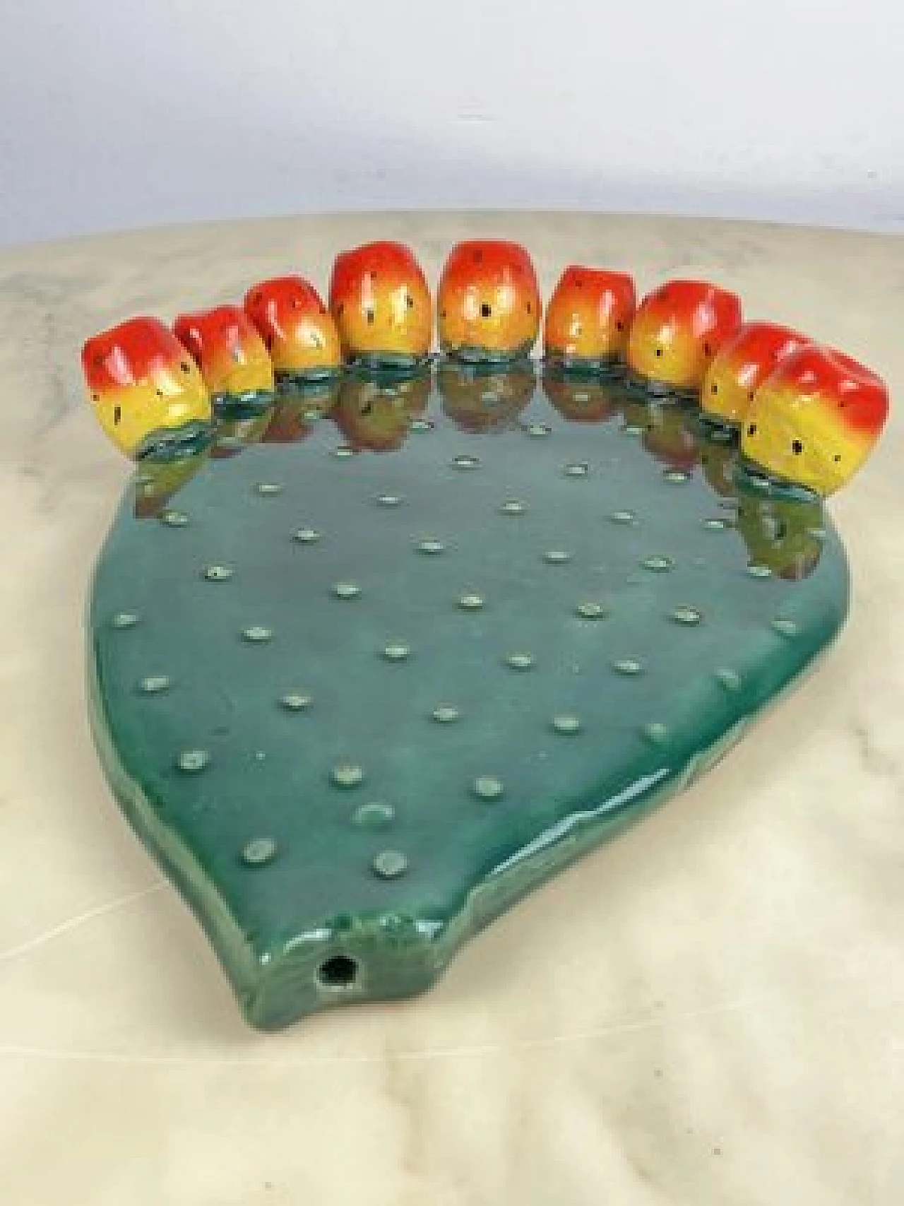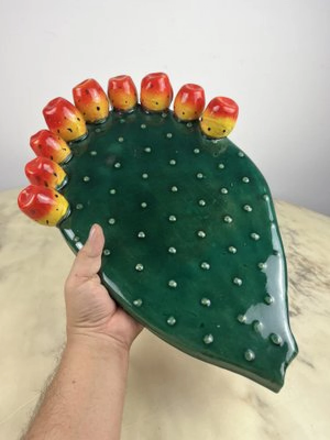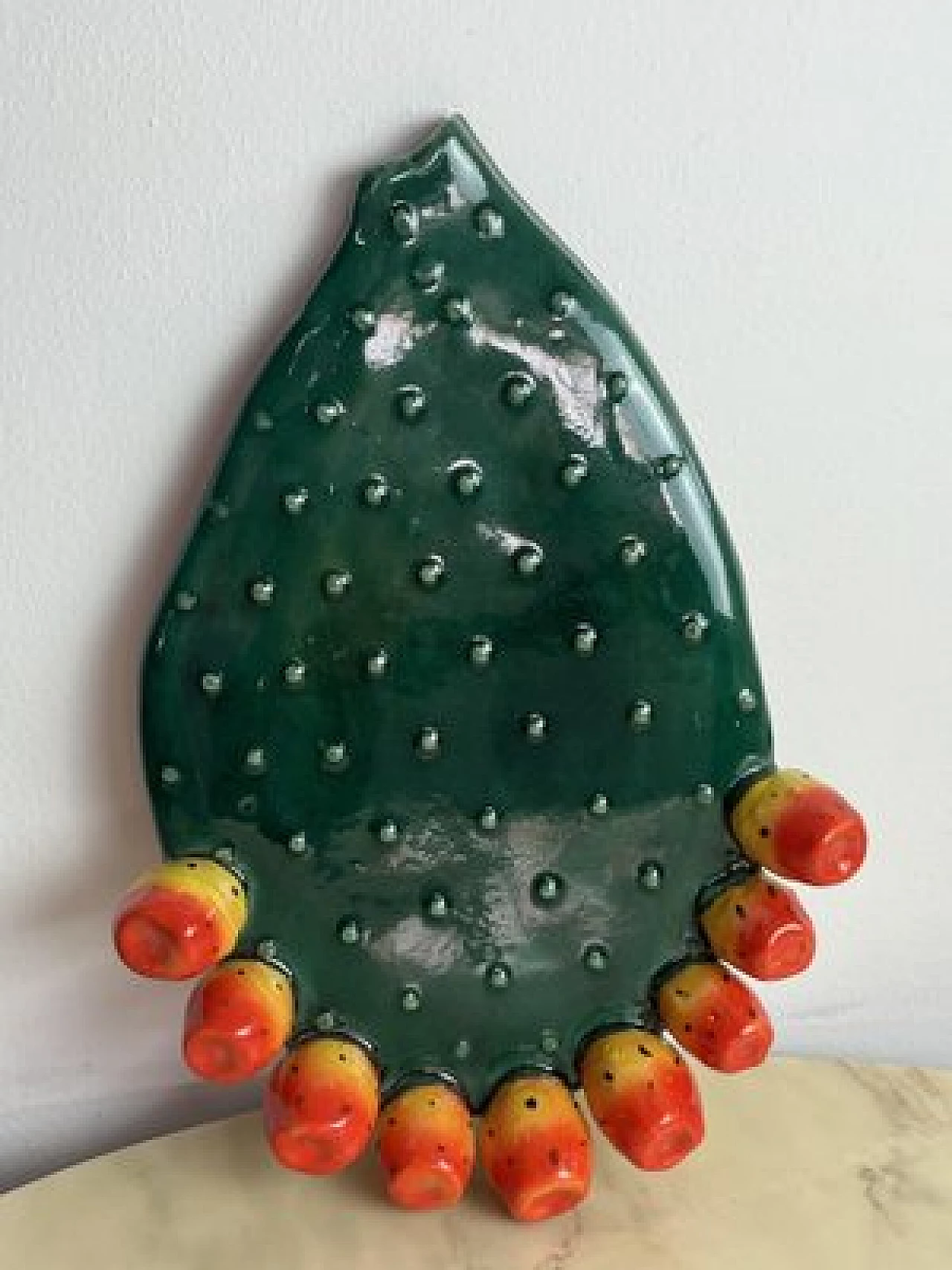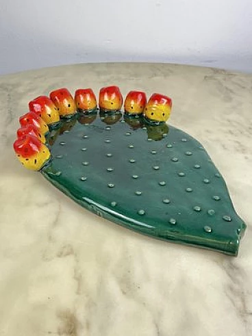 Sicilian glazed terracotta prickly pear leaf, 1980s