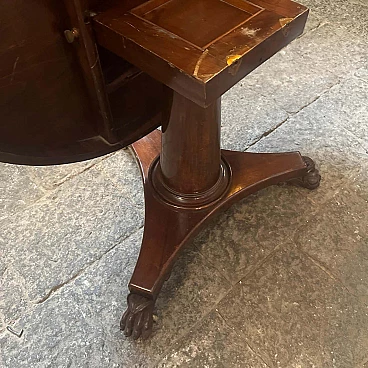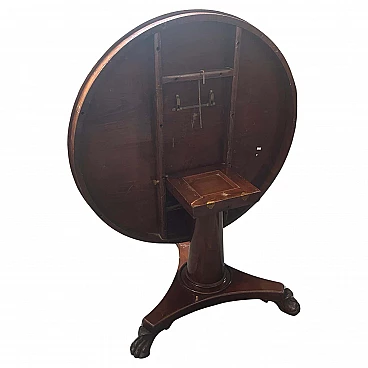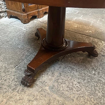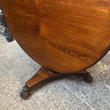 This Sicilian tilt-top table is a distinctive piece of furniture, reflecting the design aesthetic of the Empire style, popular in the early to mid 19th century. It is a testament to the grandeur and elegance of the Empire style, characterised by quality craftsmanship, classical influences and functional design. The table is in original condition with signs of use and age. The table has a round top that can be tilted so that it can be easily folded or adjusted as required. This feature adds functionality, especially in smaller spaces, while maintaining the elegance of the design. The finish is glossy and enhances the depth of colour and wood grain. The table has a central base with three legs finished with lion's paws, a common feature in Empire-style furniture. The craftsmanship is of the highest quality, with precise joinery and attention to detail. Skilled craftsmen used traditional techniques to create a table that not only served a functional purpose, but was also a work of art.