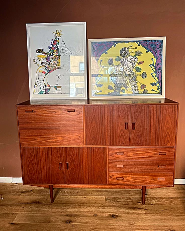 Teak sideboard, 1960s. Inside it has both teak and crystal shelves. Very solid and elegant, perfect for the dining room but also for the entrance hall and living room.