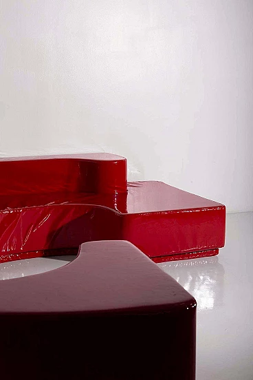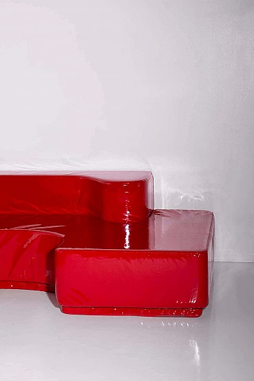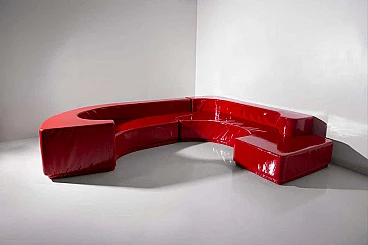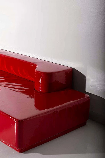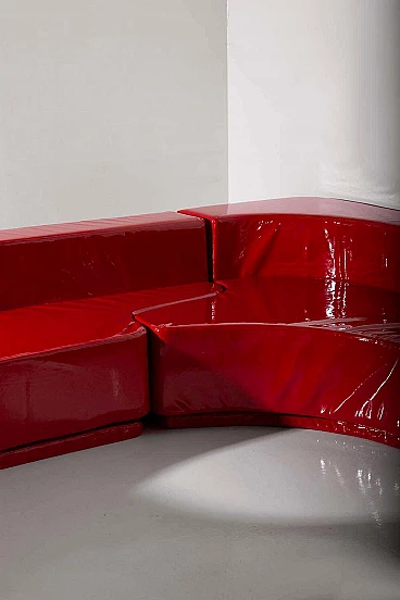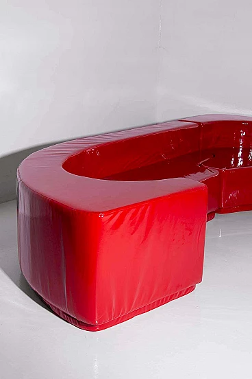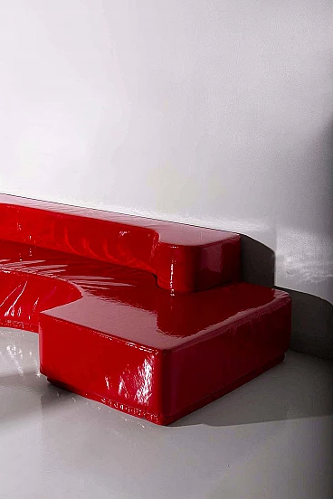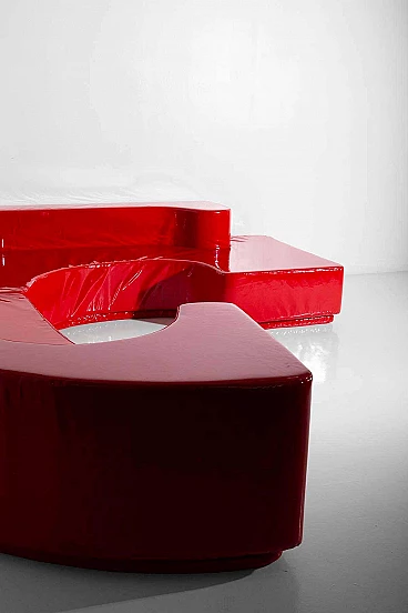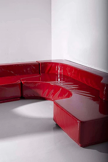 The iconic Lara sofa, designed by Noti Massari, Roberto Pamio & Renato Toso for Stilwood, Italy, in 1968, is a timeless work of art that captures the essence of 1960s design. This extraordinary sofa consists of two pieces that join together at the centre, creating a symphony of fluid, futuristic shapes. The red latticework that completely envelops the sofa is a veritable ode to eccentricity and design courage. This choice of upholstery transforms the sofa into a bold statement of style and individuality. It is a choice that embraces the experimentation and creativity of the designers of the time. The Design/One period, the 1960s, is known as the A Space era, an era of innovation and futuristic vision. The sofa's curved and sinuous shapes pay homage to this extraordinary era when mankind dreamed of exploring the stars. This sofa is the ideal choice for eccentric homes, designer living rooms or spaces inspired by the Space Age style. It is a living testimony to an age of experimentation and a visionary future that continues to enchant and inspire.