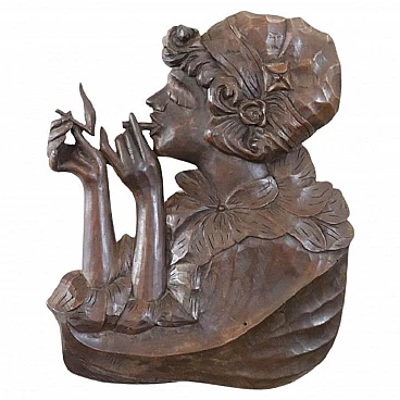 Art Nouveau walnut woman with cigarette bas-relief, early 20th century 1