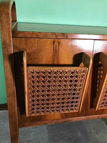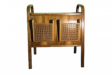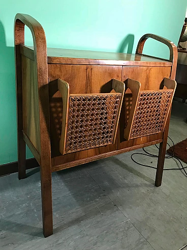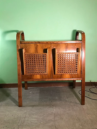 Simpatico tavolino o comodino di manifattura italiana in radica di noce, a due ante dotate di portariviste in paglia di Vienna. #madeinitaly