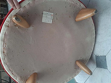 Round red fabric pouf with wooden legs by Moroso, 1990s