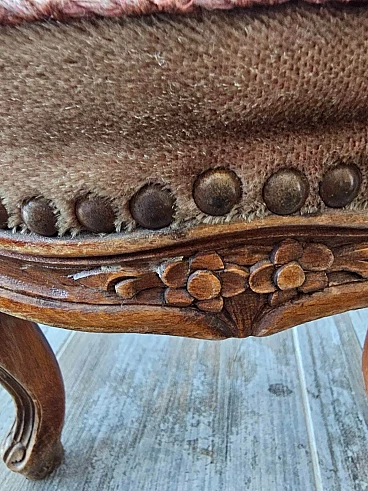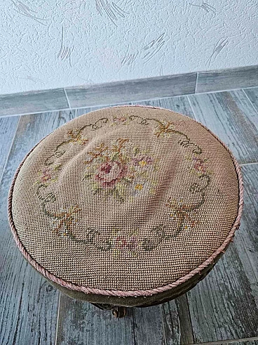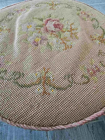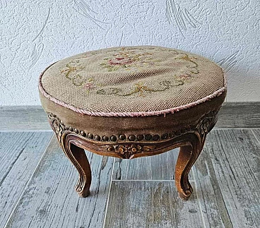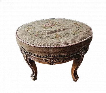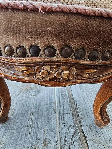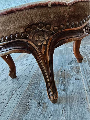 Victorian - French Louis XV pre-1890 stool. Made of carved walnut, the photos are part of the description. Diameter 115 cm, height 24 cm. The product is original of the period, never restored, see photos. On request and at no extra cost we can restore the wood. If you are an interior decorator, we can give you discounts on quantity and single shipment.