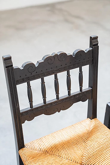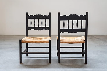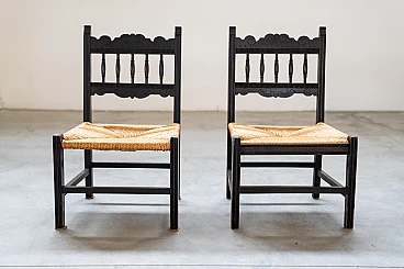 Pair of hand-woven rice straw chamber chairs, 1950s