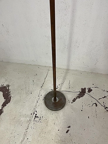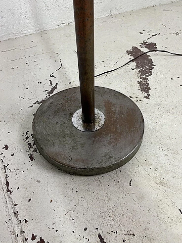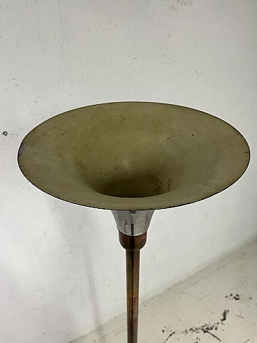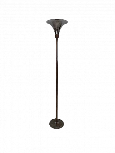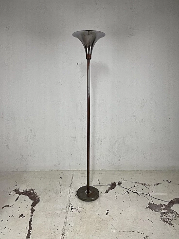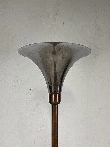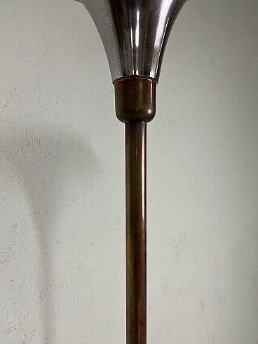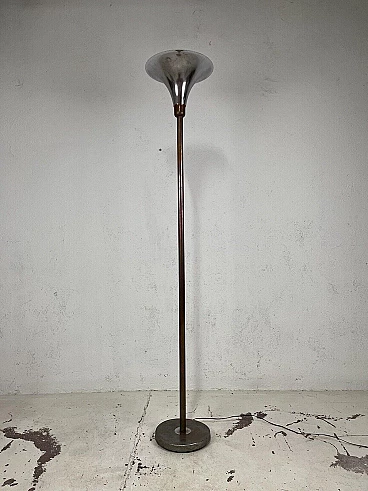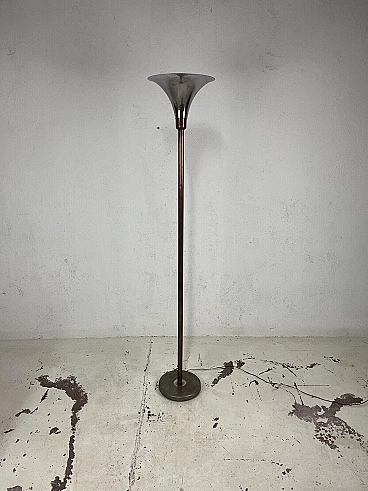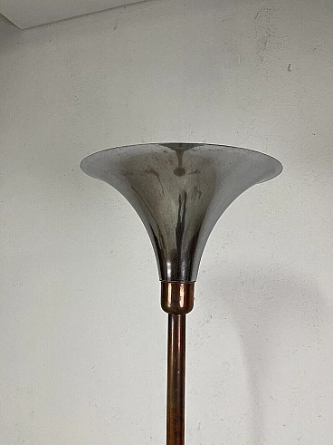 Floor lamp with copper and chrome-plated metal frame, Luminator model, manufactured in the 1960s. The lamp has been carefully cleaned and polished, is in good condition, with patina signs of use. The electrical system has been overhauled, it mounts an e27 bulb (not included). Measurements 182 x 30 x 27 (base) cm.