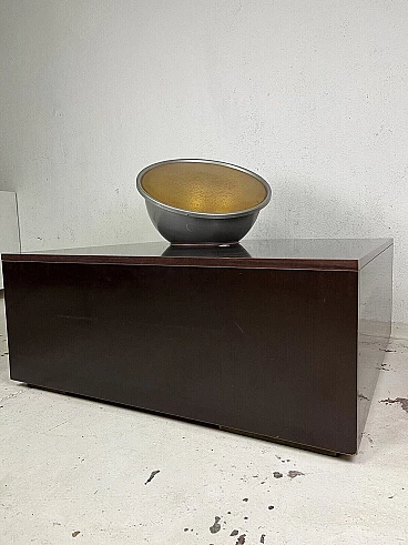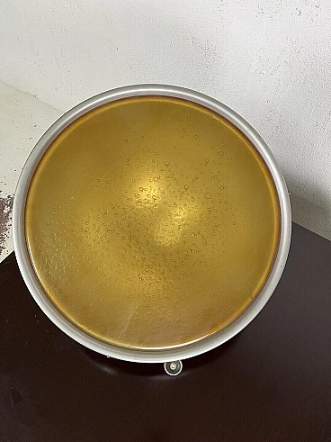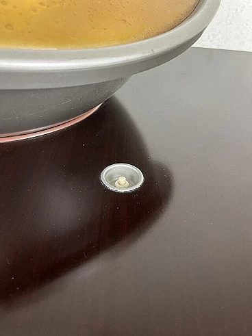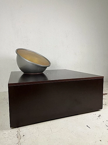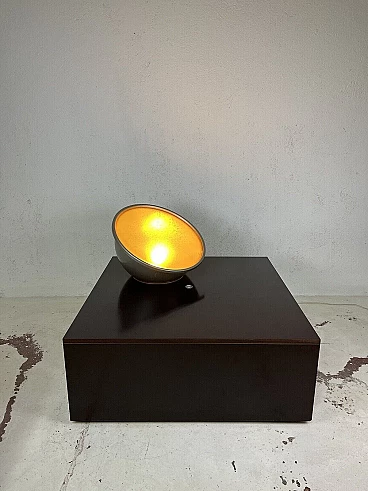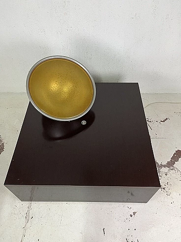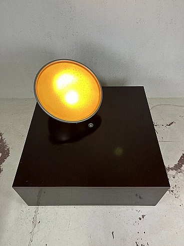 Coffee table with wooden structure and integrated lamp with push-button ignition with a Space Age design, Italian manufacturing from the 1960s. The coffee table has been carefully cleaned and polished and is in excellent condition. Measurements 37 x 91 x 91 cm. Lamp measures 49 x 24 cm.