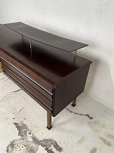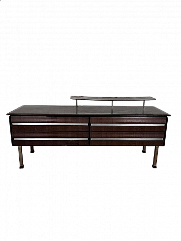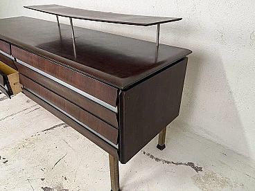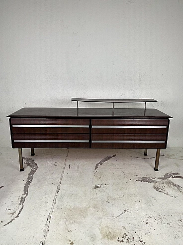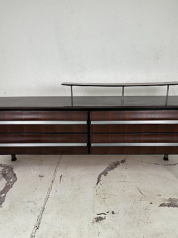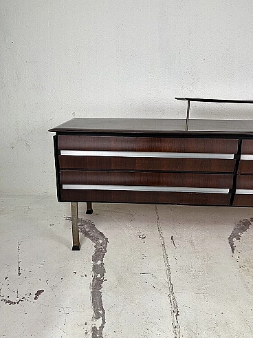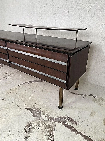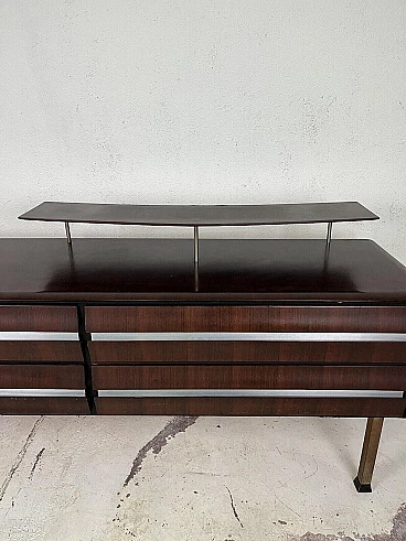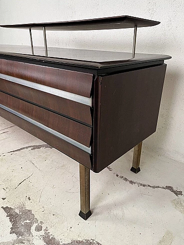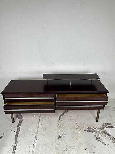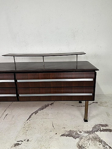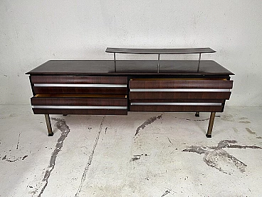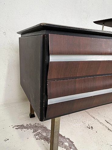 Dark stained wood chest of drawers with aluminum details, 1960s