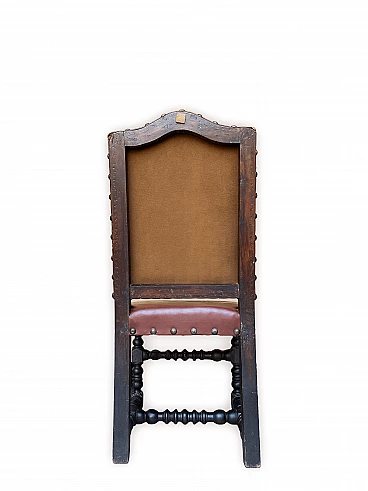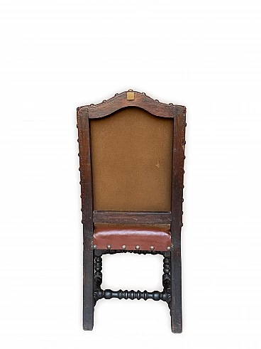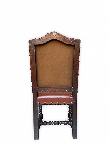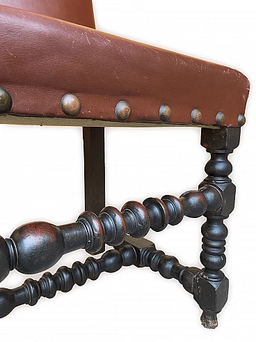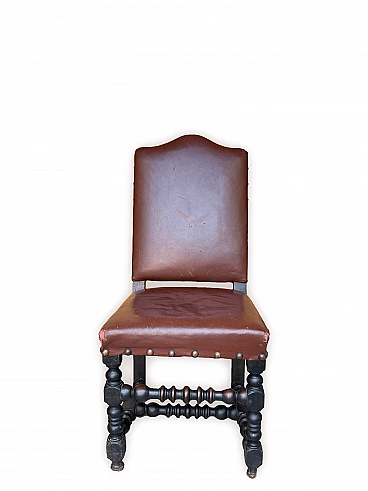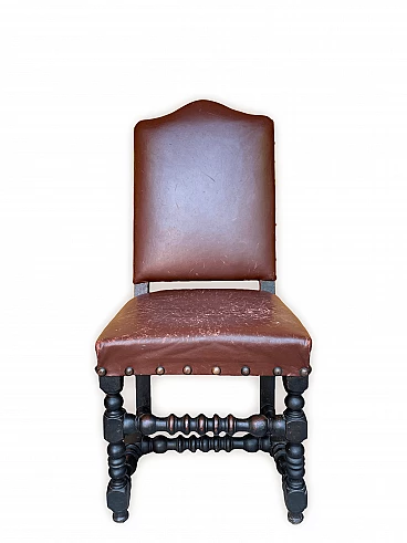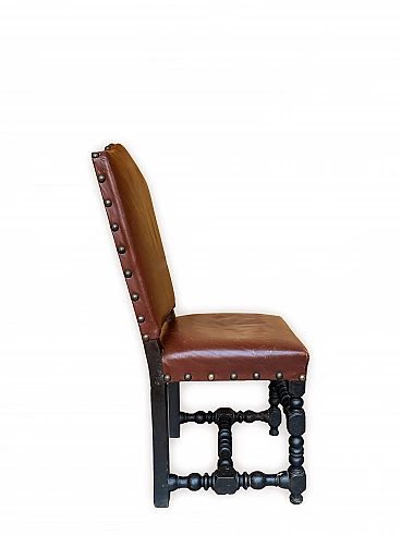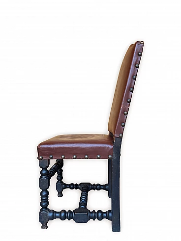 3 Chairs in oak and burgundy hide with studs, 19th century