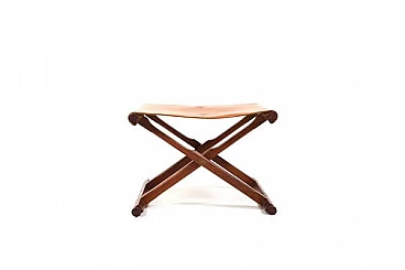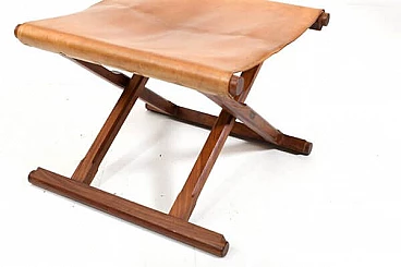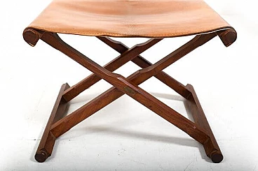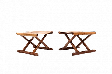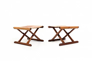 Pair of Danish teak and leather folding stools, 1960s