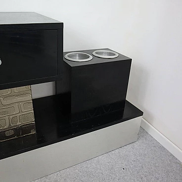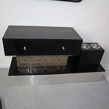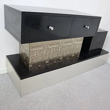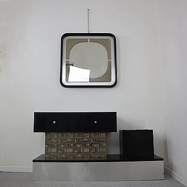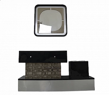 Wood, aluminum and glass console and mirror, 1970s