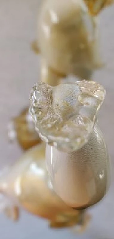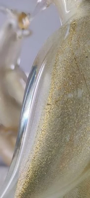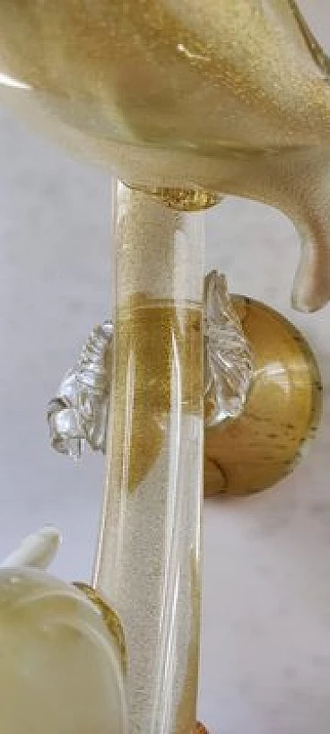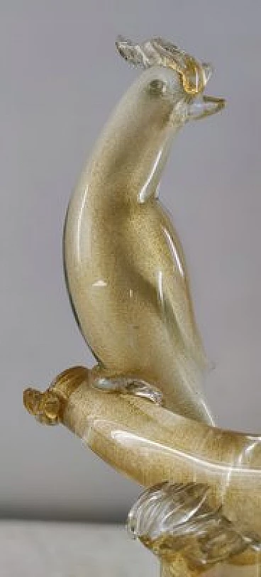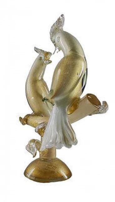 Murano glass sculpture by Livio Seguso for Salviati depicting two birds perched on a branch, 1980s. Gilded milk and transparent glass. Almost perfect condition.
