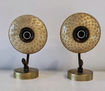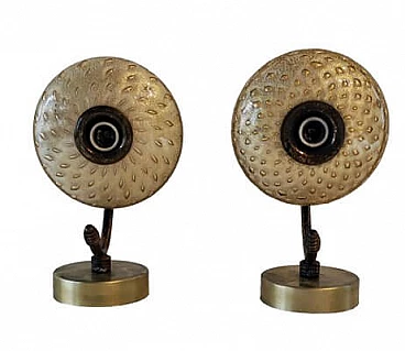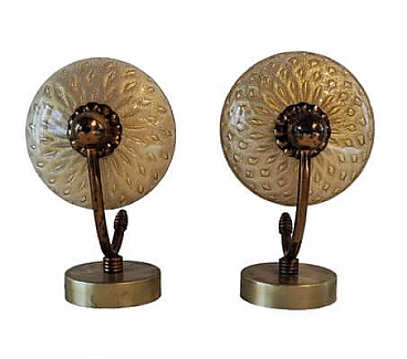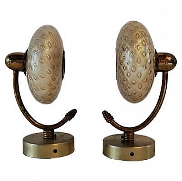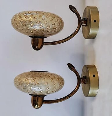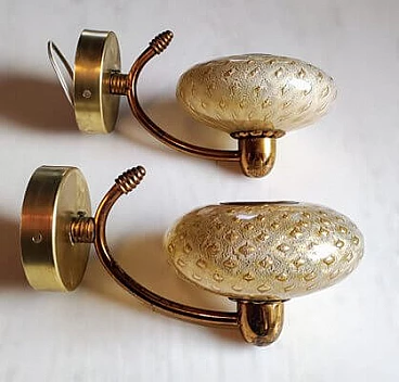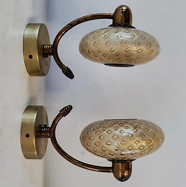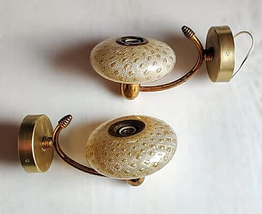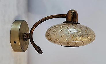 Brass-plated metal and Murano glass wall sconce, 1950s