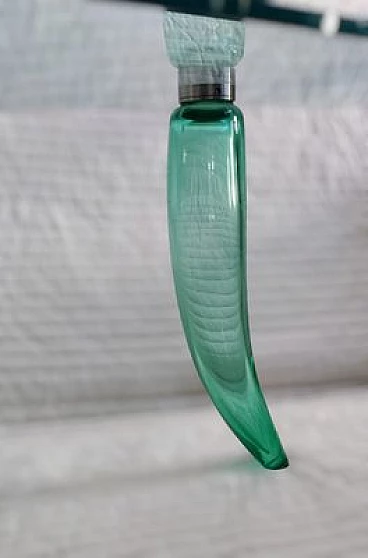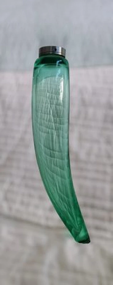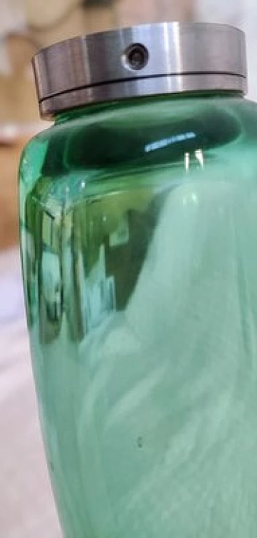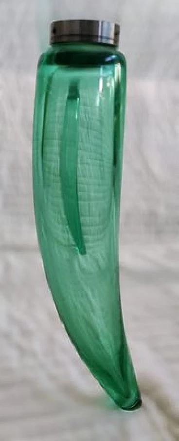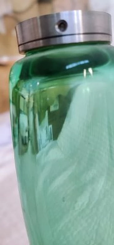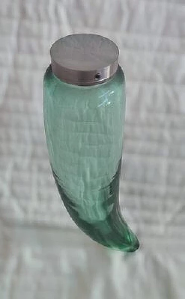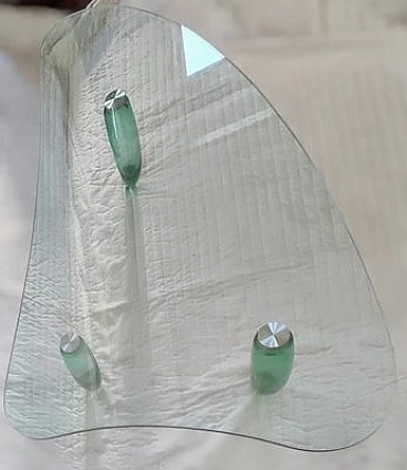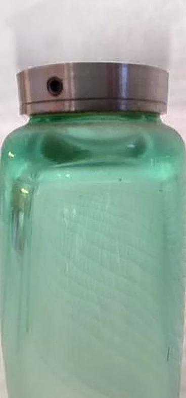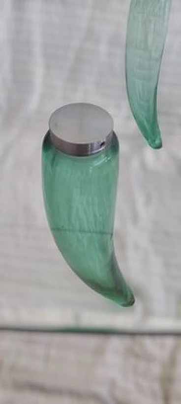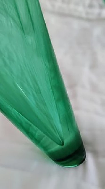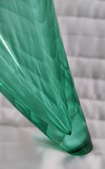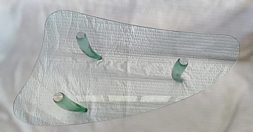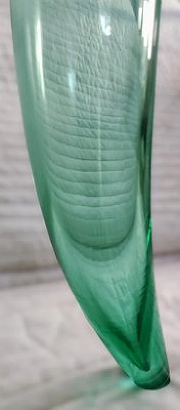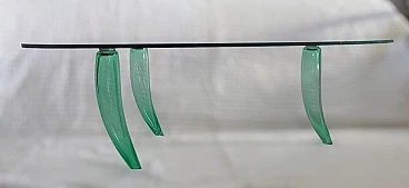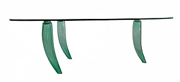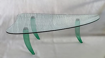 Coffee table by Seguso made entirely of Murano glass, 1990s. Transparent top with green legs fixed with stainless steel "caps".