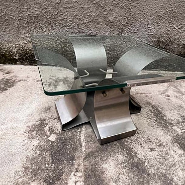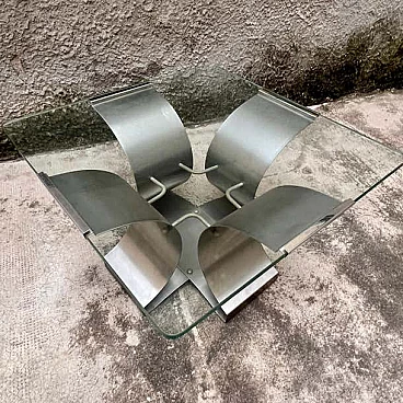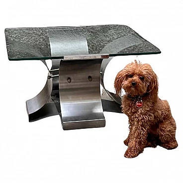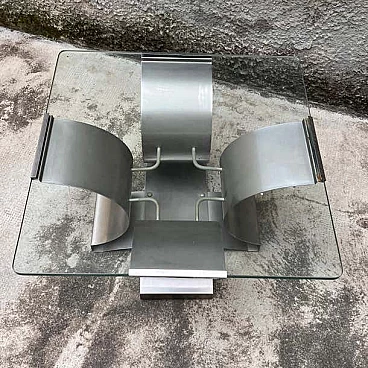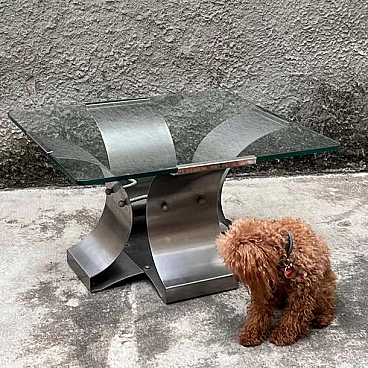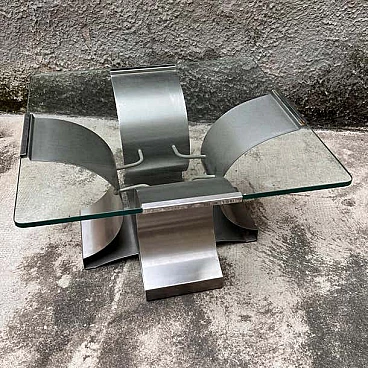 Steel and glass coffee table by François Monnet for Kappa, 1970s