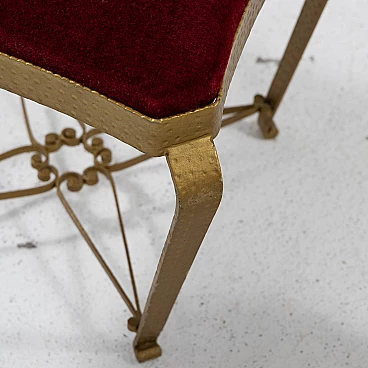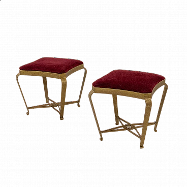 Pair of gilded metal and red velvet poufs by Pier Luigi Colli, 1950s