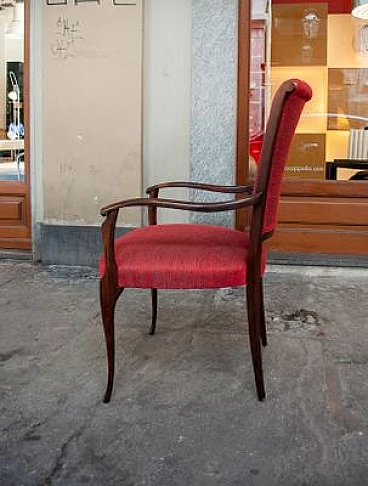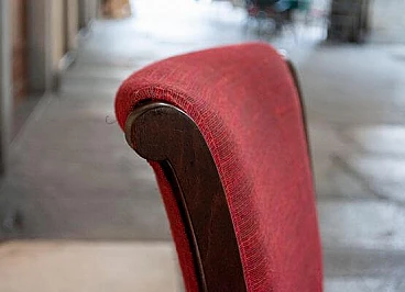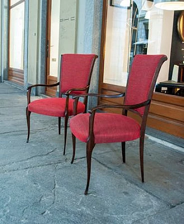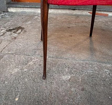 Pair of wooden armchairs with red fabric upholstery, 1950s