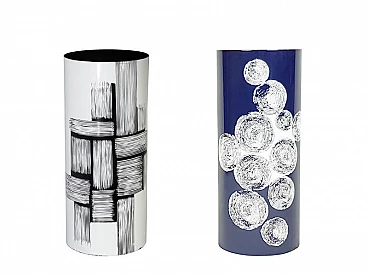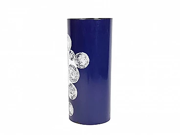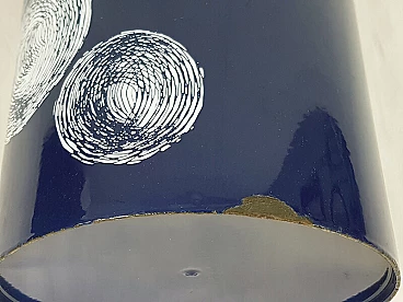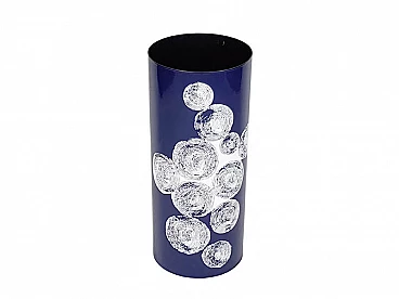 Blue, white and black enamelled metal cylindrical umbrella stand, 1960s