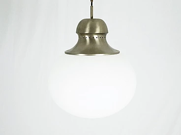 A298 nickel-plated brass and opal glass pendant lamp by Candle, 1960s