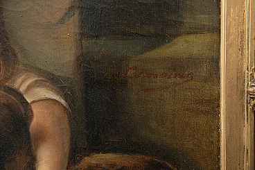 Oil painting on canvas depicting a little girl with a dog made in France in the 19th century and signed "A. Lemoine" (1809-1839). Coeval frame. The scene takes place in the foreground with the presence of the little girl dressed in period clothing while tenderly clutching her dog. The depth of the scene is provided by the architecture behind the little girl. The bright colors and luminosity of the scene clearly refer to early 19th-century French painting. Work complete with certificate of authenticity. We are at your disposal for further clarification or photographic details. Shipping throughout Italy, Europe and the Rest of the World in maximum security and traceable. Shipping will be arranged privately.
