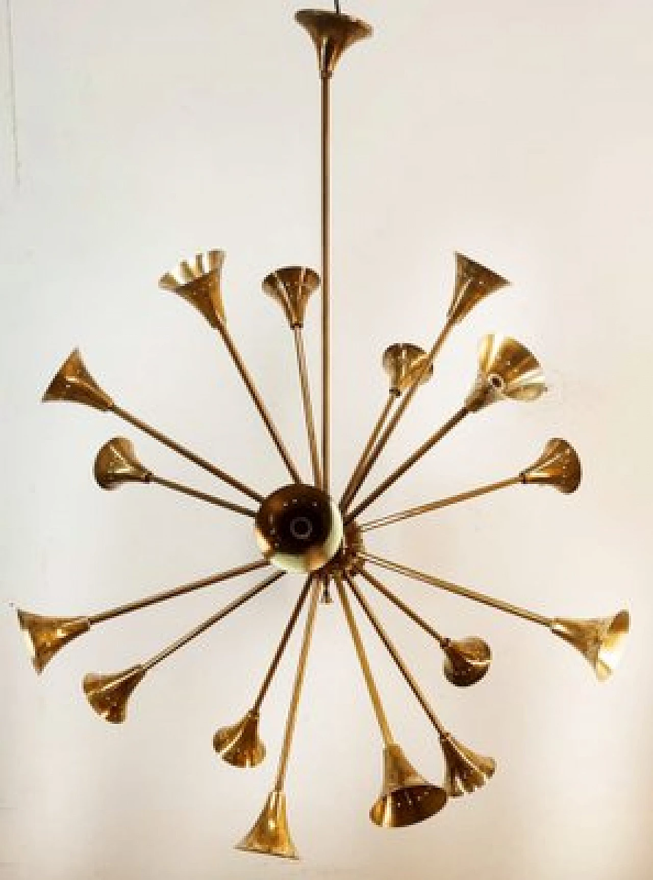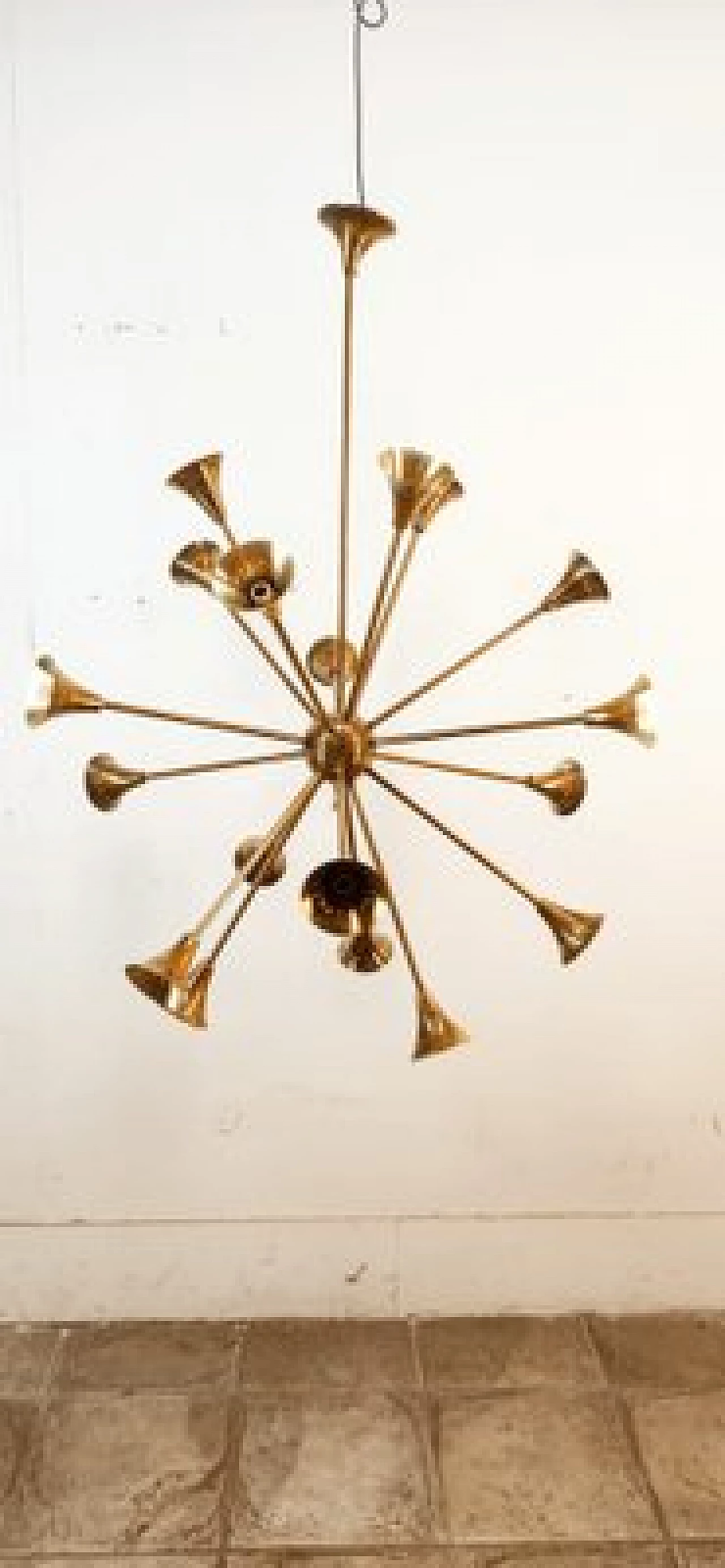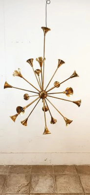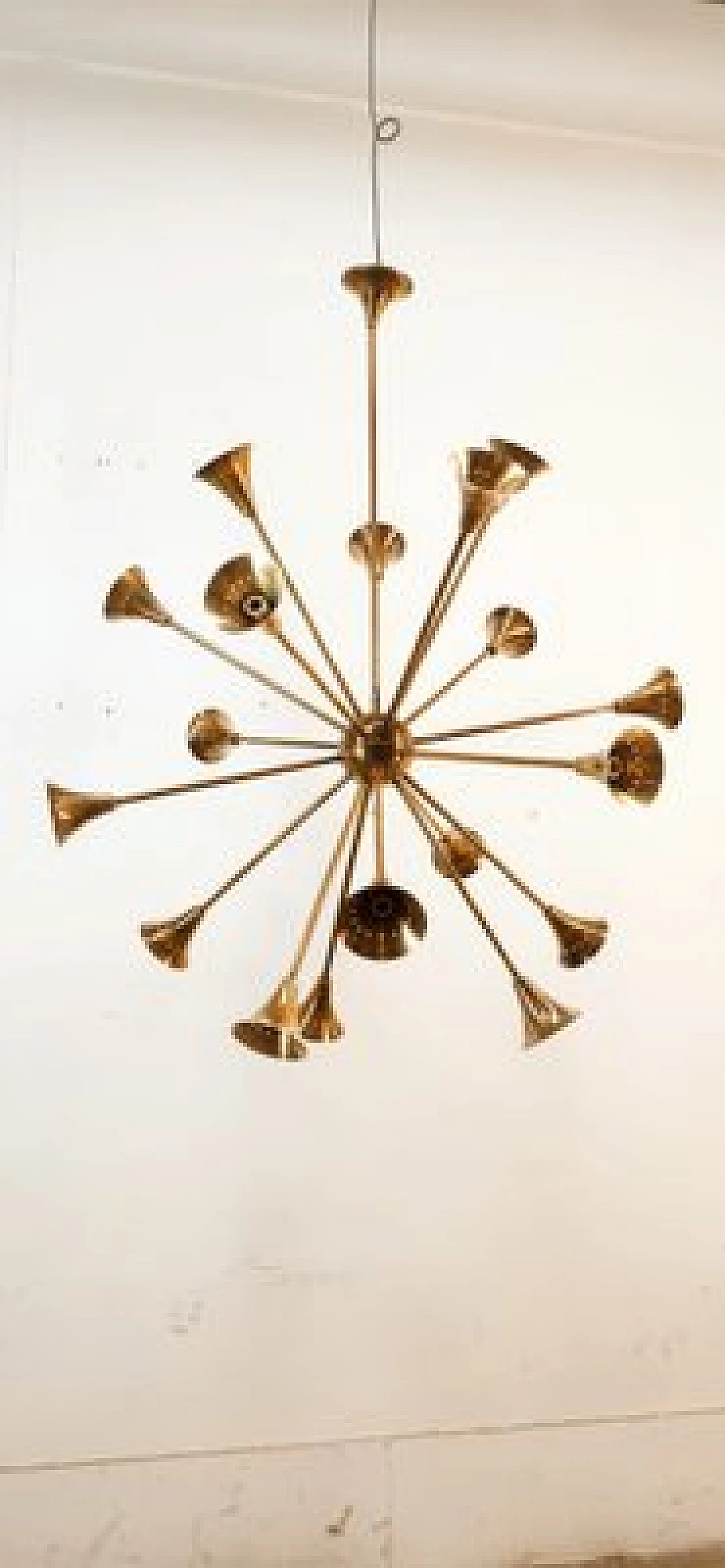Eighteen-light brass Sputnik chandelier, 1950s 15