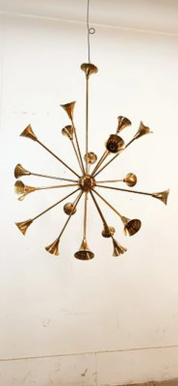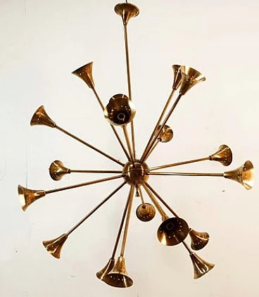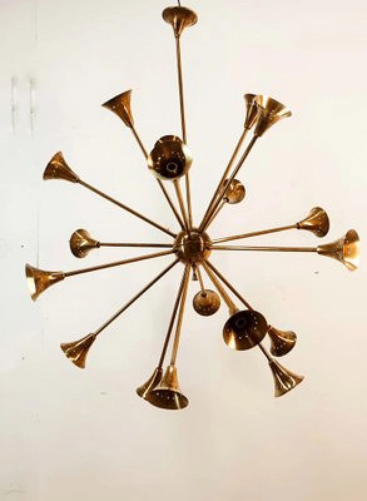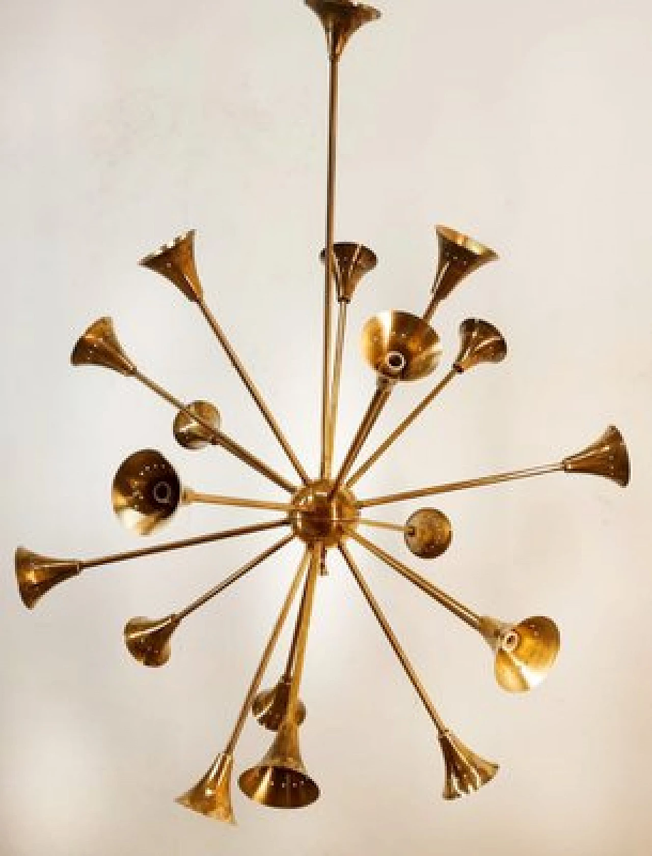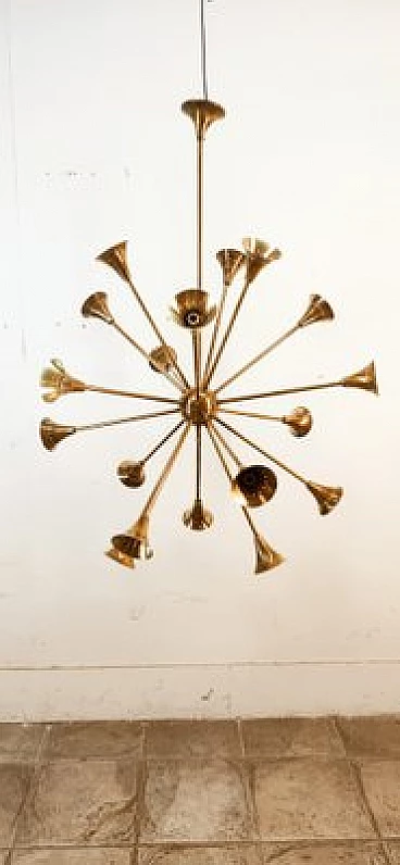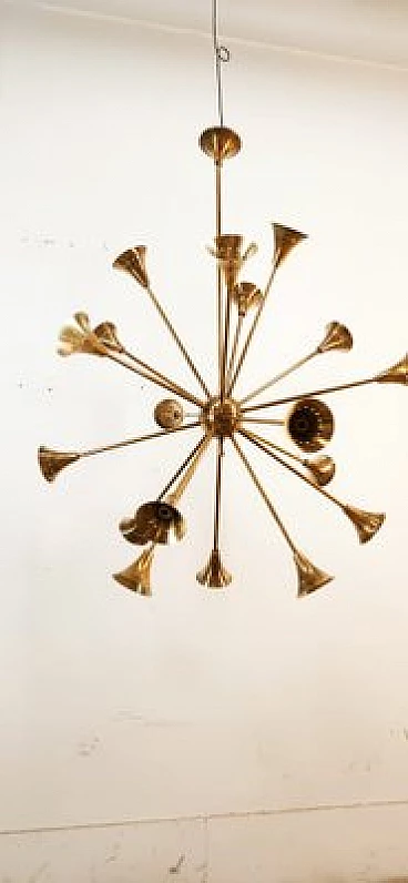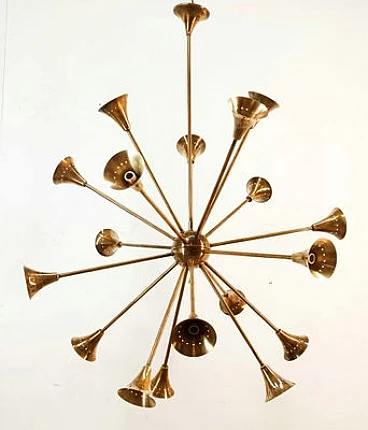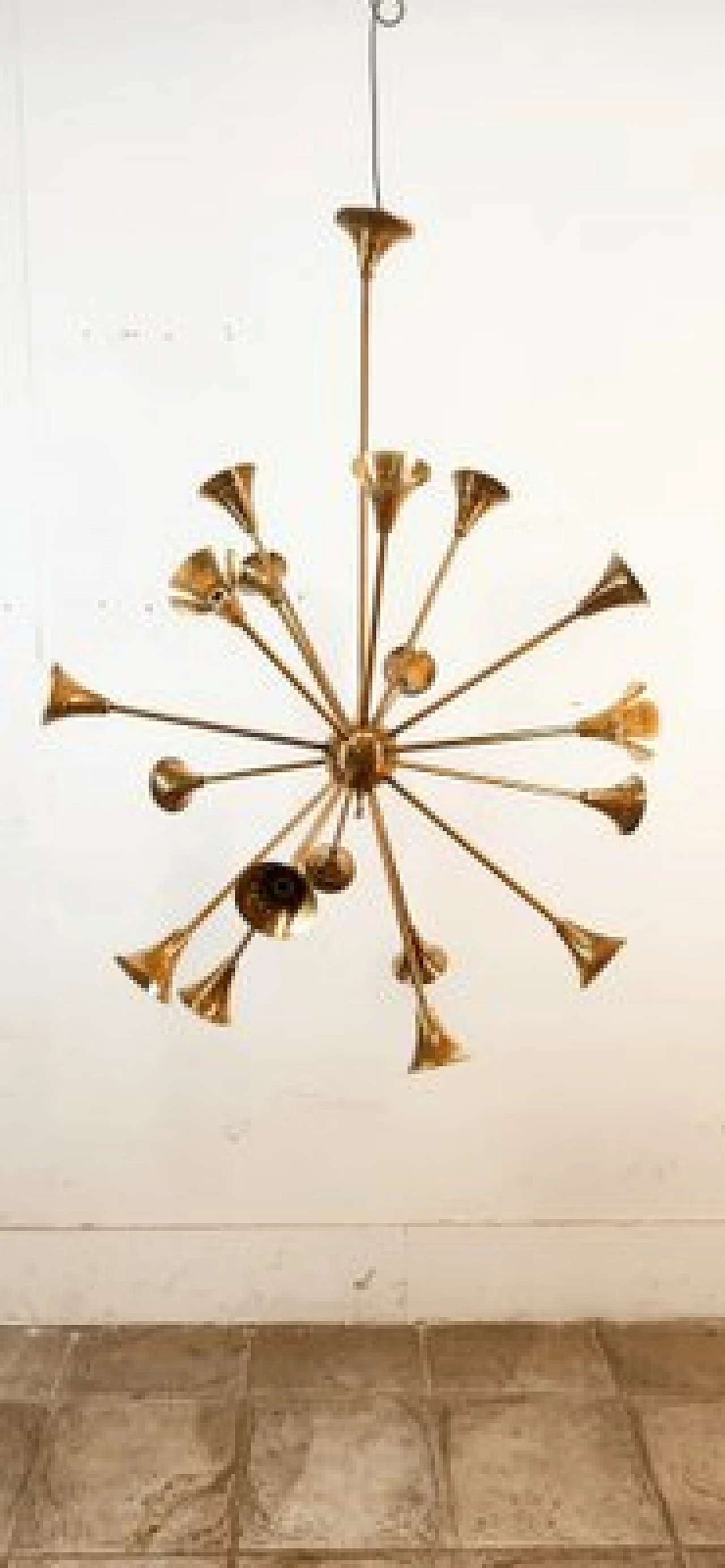 Eighteen-light brass Sputnik chandelier, 1950s 15