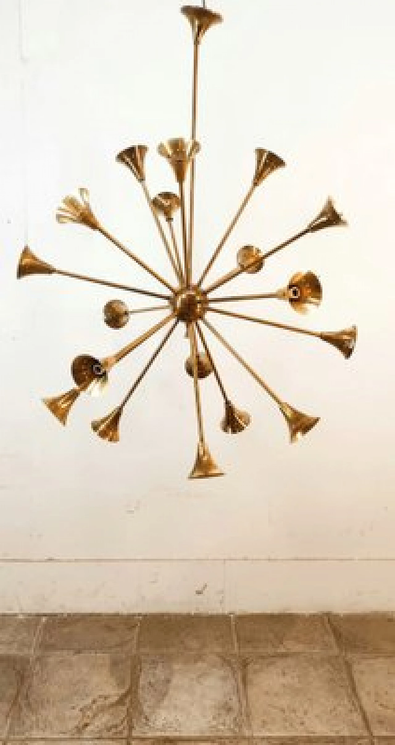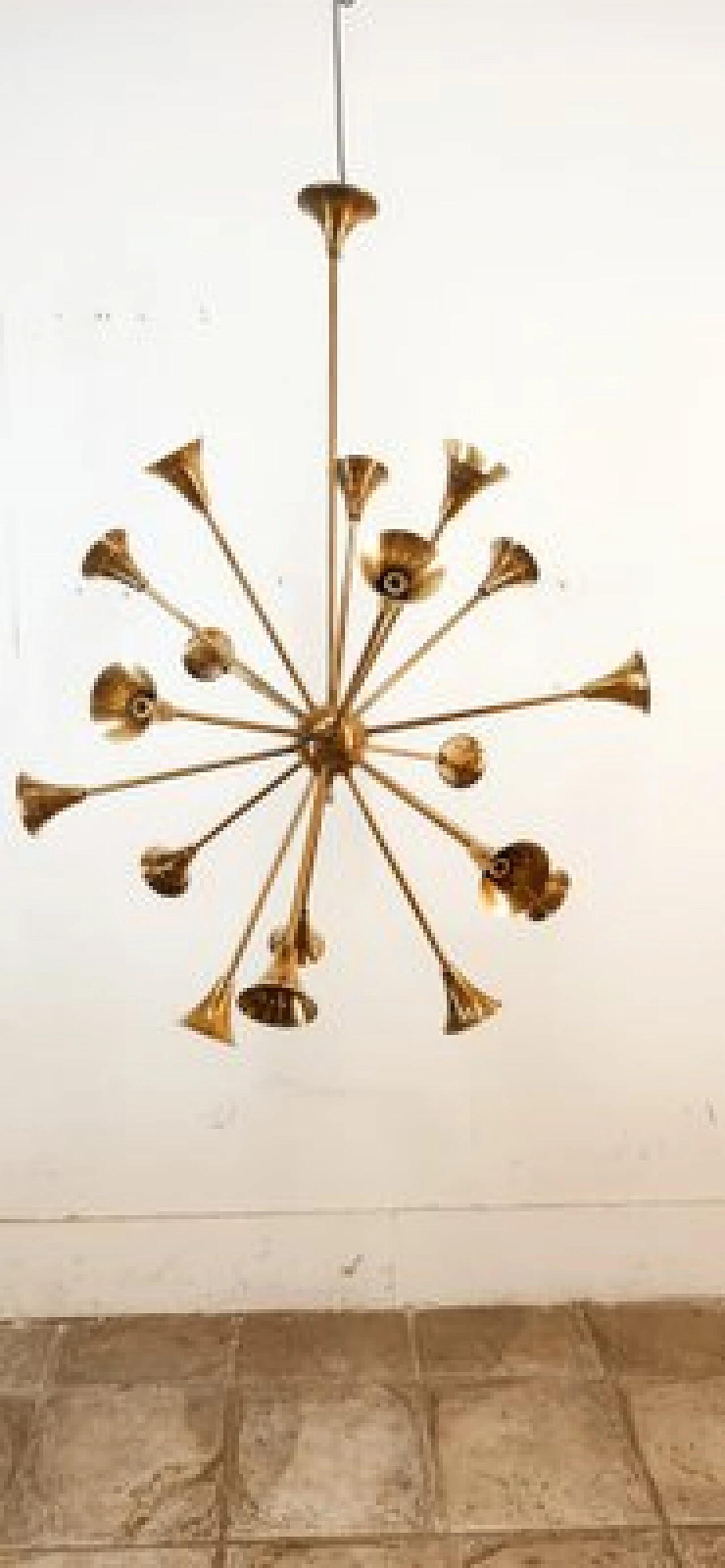 Eighteen-light brass Sputnik chandelier, 1950s 31