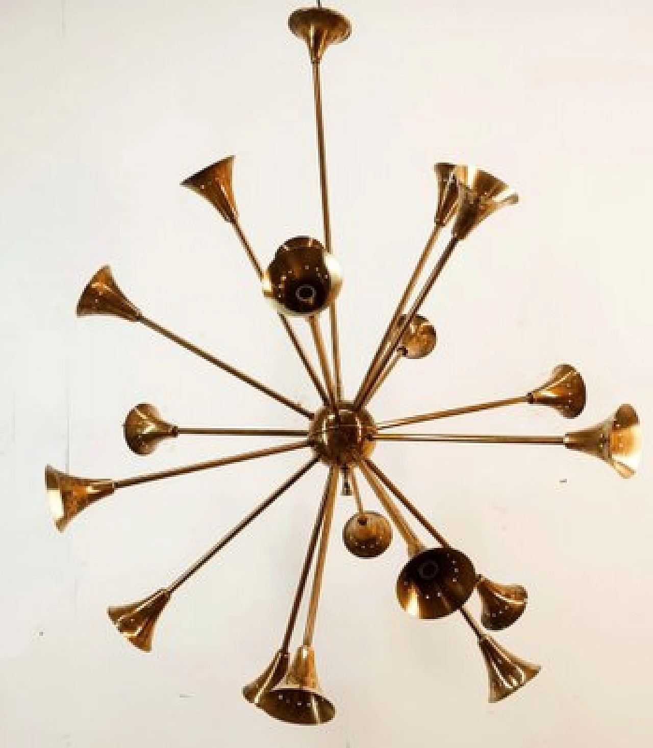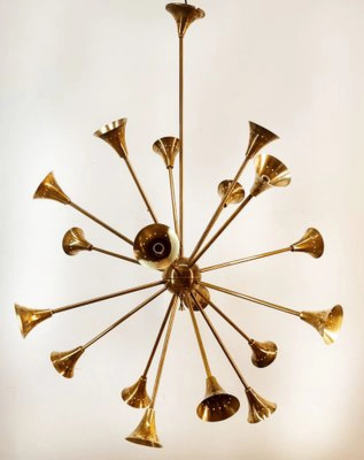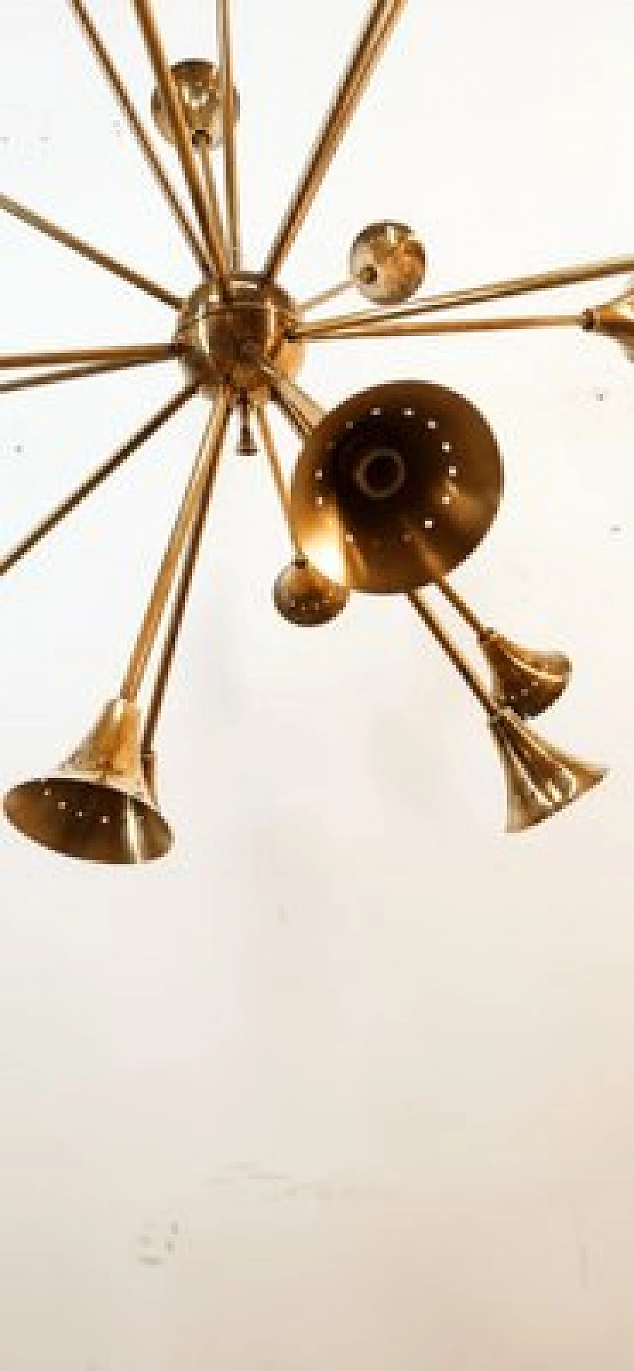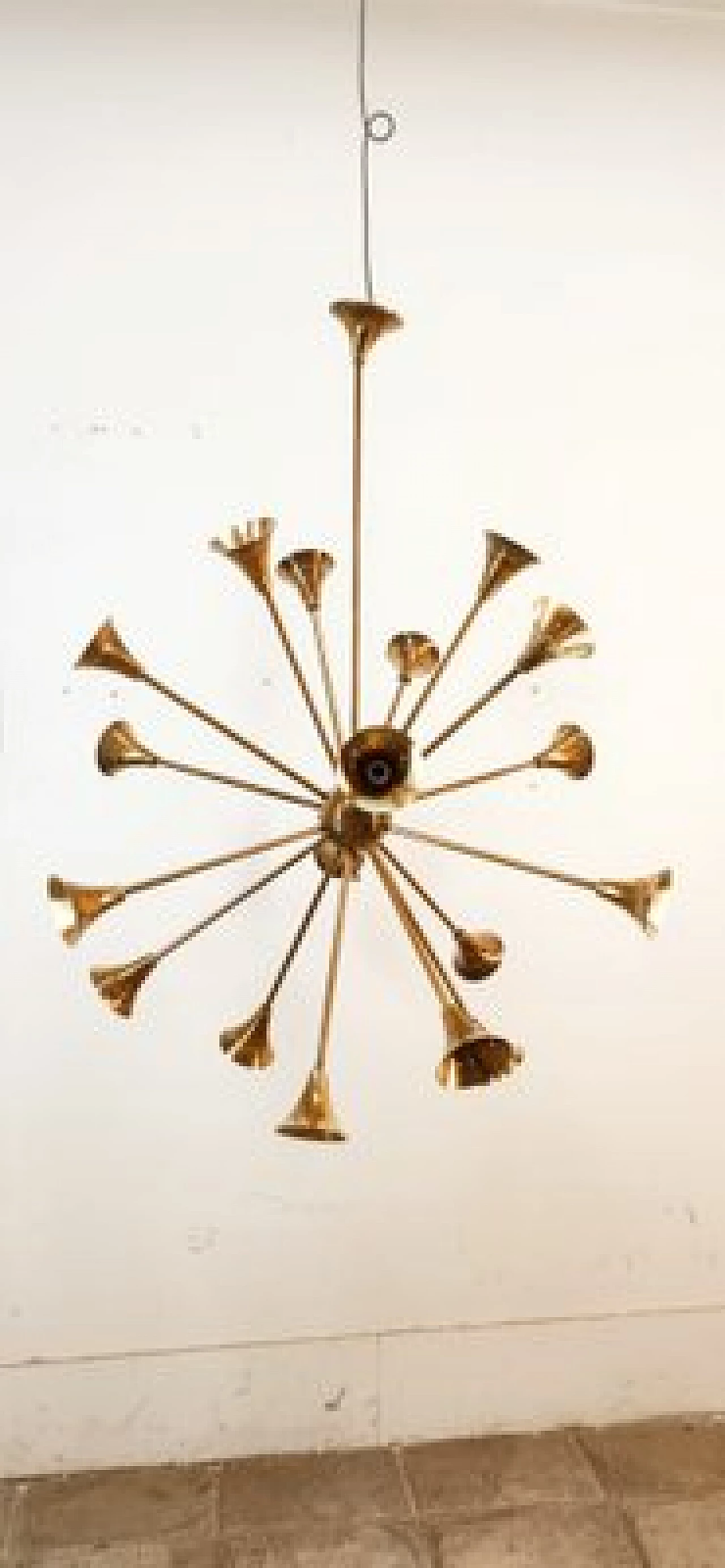 Eighteen-light brass Sputnik chandelier, 1950s 13