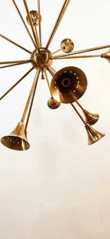 Eighteen-light brass Sputnik chandelier, 1950s 9