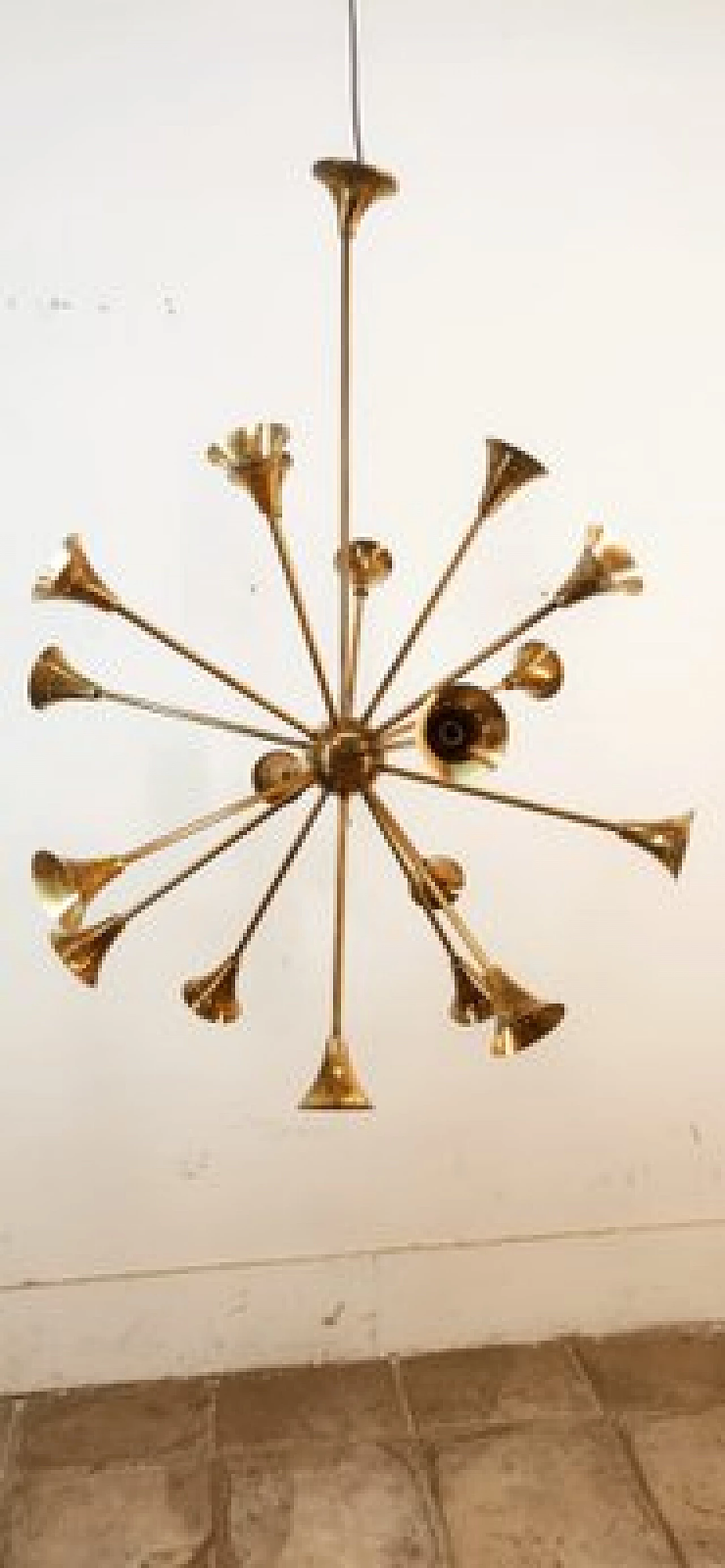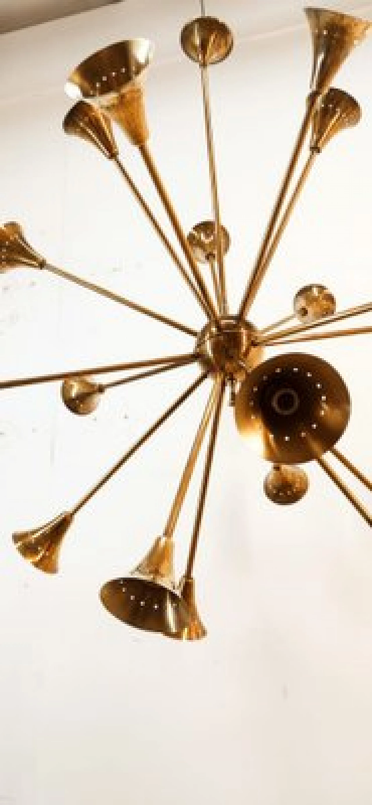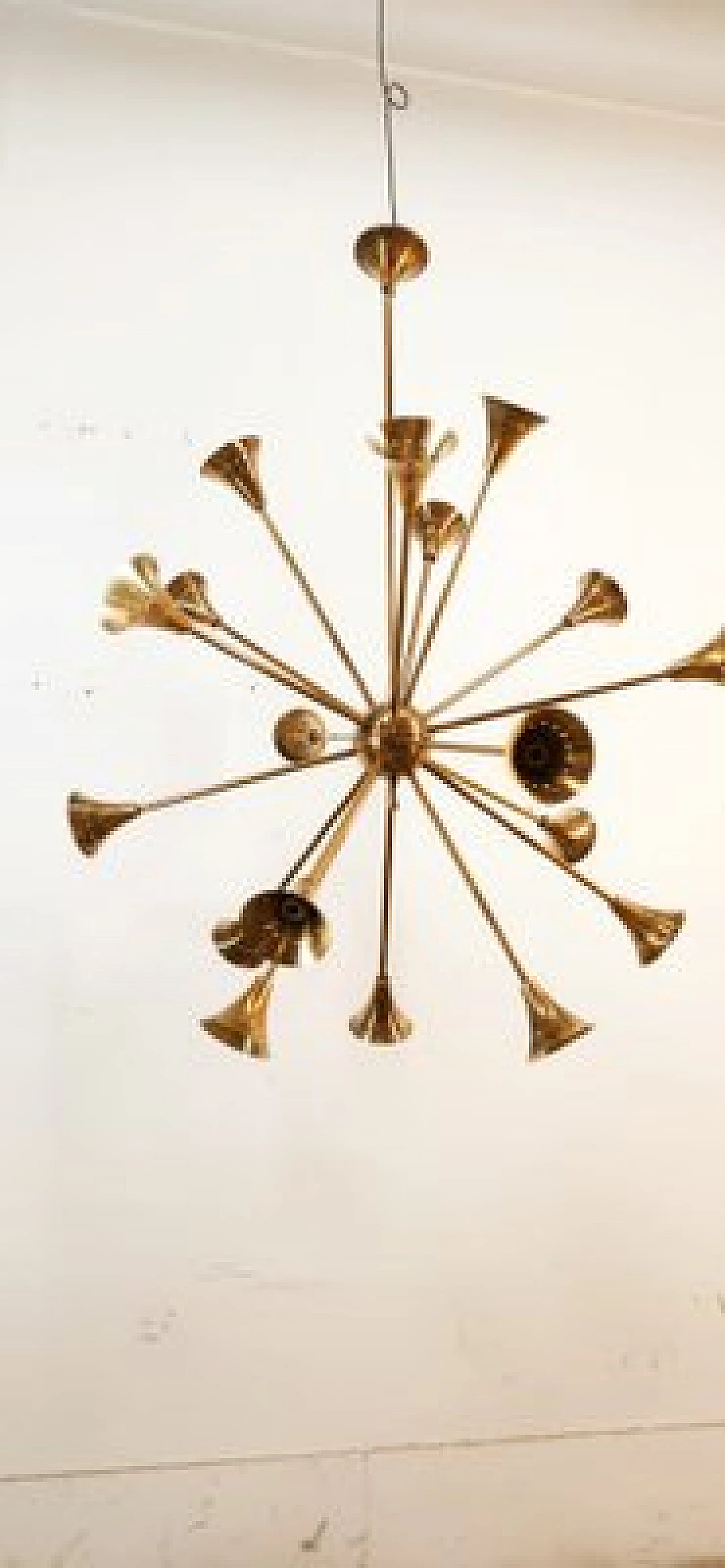Eighteen-light brass Sputnik chandelier, 1950s 11