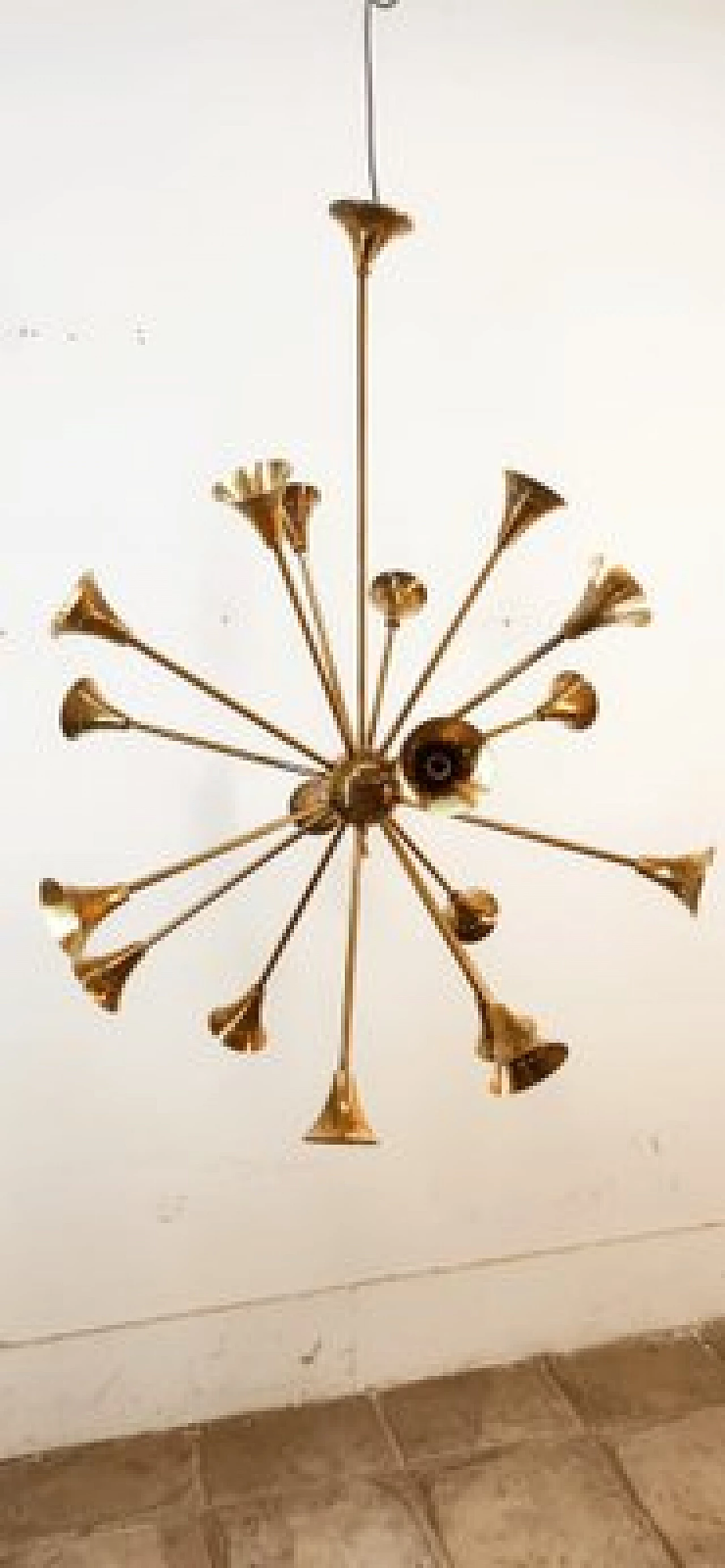 Eighteen-light brass Sputnik chandelier, 1950s 14