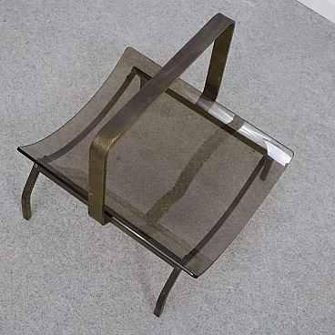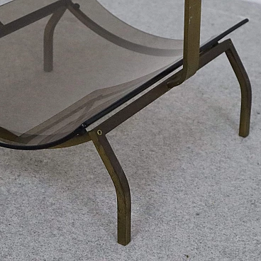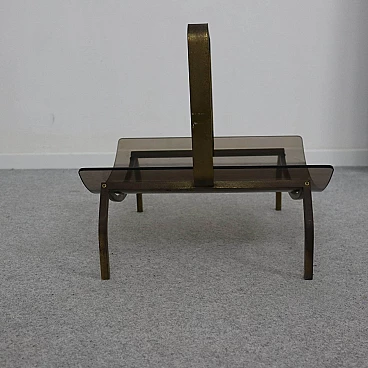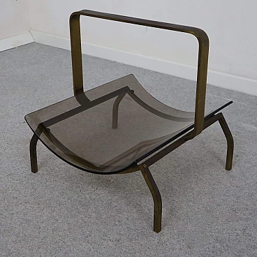 Add a touch of style and practicality to your décor with this stunning vintage magazine rack. Crafted from brass and curved glass, this piece embodies the timeless elegance of 1960s Italian design. With a width of 39 cm, a depth of 40 cm and a height of 39 cm, this magazine rack offers enough space to store magazines, newspapers or other items, while its compact design makes it suitable for any room. The light traces of age add a touch of authenticity to the piece, while the build quality and refined design testify to its durability. The combination of brass and curved glass gives the magazine rack a distinctive elegance, while the Fontana Arte brand underlines its Italian origin and craftsmanship. Place it next to your favourite sofa, in your reading area or study for a touch of sophistication and functionality. This magazine rack is more than just a furniture accessory; it is a design icon that will add charm and character to your space.