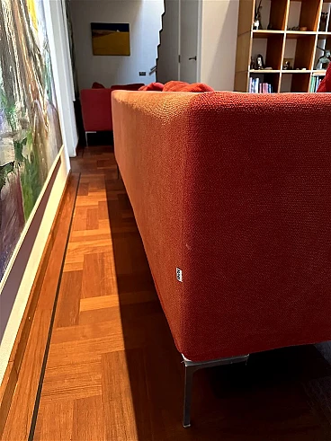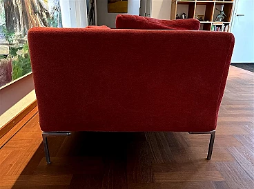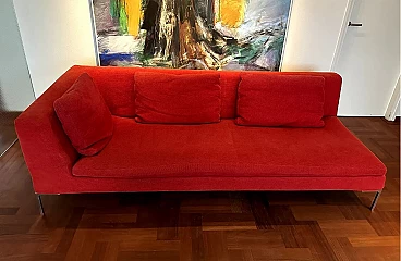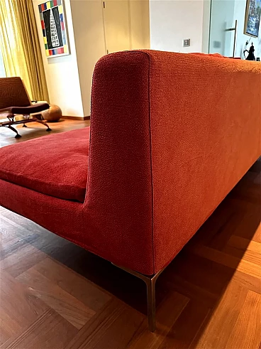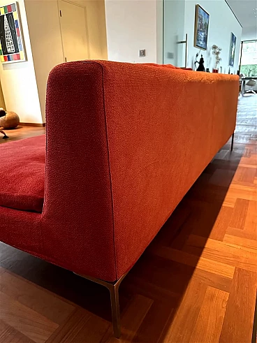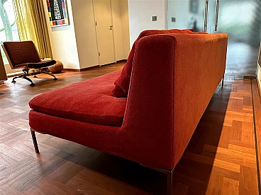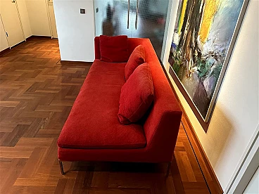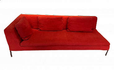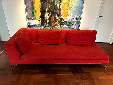 Charles sofa (mod. CH228 S) by Antonio Citterio for B&B Italia (designed in 1997). In very good condition with minimal signs of normal domestic use. It has only one armrest and can be used to create a large corner sofa as well as on its own. Upholstery in very soft red Maxalto cotton fabric, cat. super century no. 2017700, treated with Scotchgard Protection. The fabric is slightly faded by sunlight, otherwise it is in good condition.
