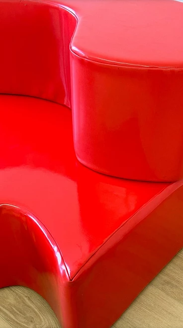 Red Superonda sofa designed by Archizoom Associati for Poltronova. The first sofa without a shell designed in 1967. Made up of two waves, obtained from a block of polyurethane sawn into two parts with an S-shaped cut. The two S fit together and overlap in different configurations, not a sofa but several sofas in one. It can be a sofa, bed and chaise longue. Covered in the original glossy sky here in the red version. At the time it was also thought of in black and white, all the other color variants are later editions. This very important work of Pop art is ideal for giving a touch of sophistication and creativity to your environments. The sofa is in excellent conservative condition, it has no structural defects and very light, almost invisible signs of aging, it is practically like new as can be seen in the photos. Archizoom was a collective of architects founded in 1966 in Florence belonging to the radical architecture movement, the group disbanded in 1974. Poltronova was founded in 1957 with headquarters in Florence, operating in the furniture and design sector. Thanks to collaborations with the big names in design, it has given life to iconic pieces that are still loved and present in the most prestigious museums.