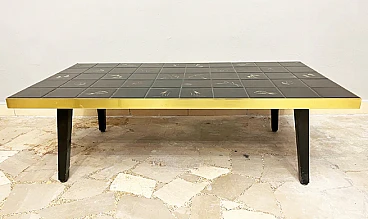 Wood, black majolica and brass coffee table, 1970s