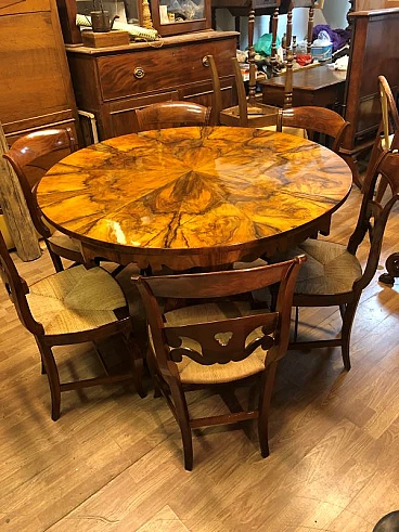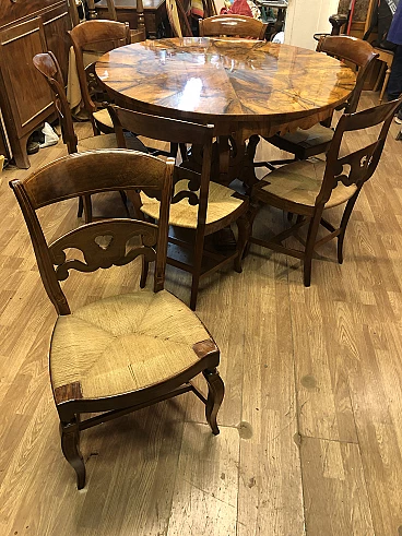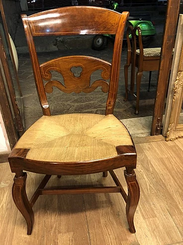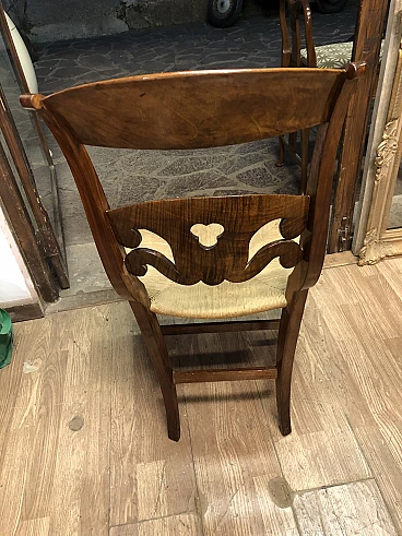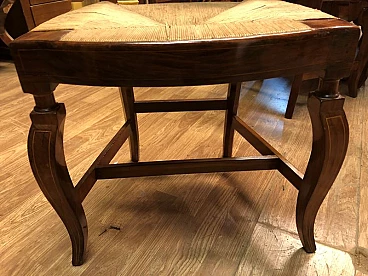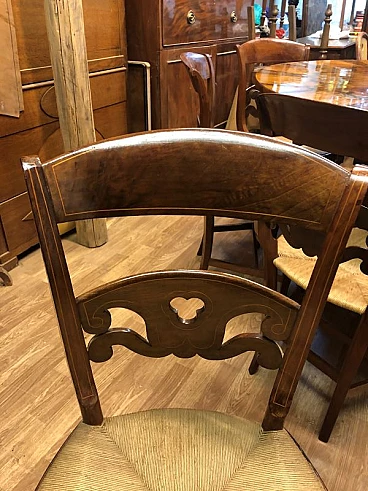 8 Walnut and straw chairs with maple threading, 19th century