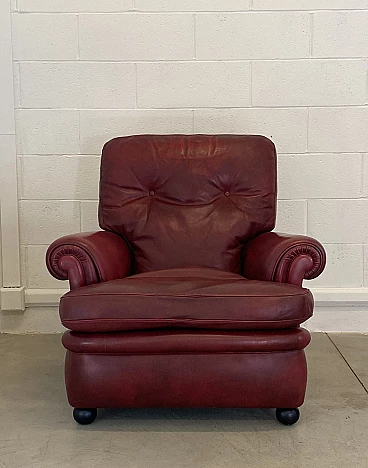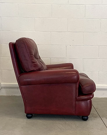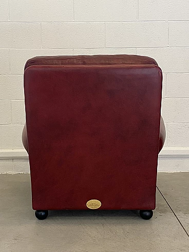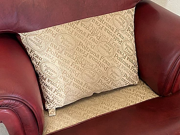80s armchair by Frau in red leather, metal label on the back and bottom. Branded cushions, a sofa from the same series available if desired (see photo).