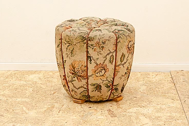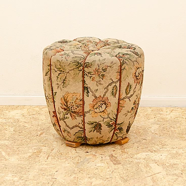Art Deco wood and fabric pouf by Jindřich Halabala for UP Závody (formerly Czechoslovakia), 1950s. The upholstery shows signs of time and use, particular a few small scratches in places on the seat. Overall it is preserved in good vintage condition.