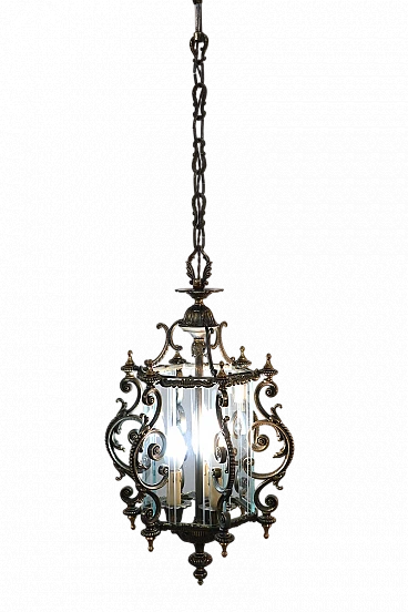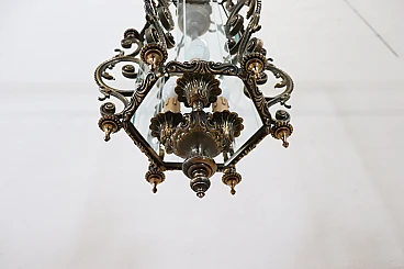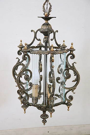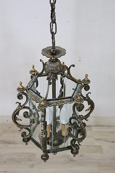 The bronze has acquired a beautiful patina. This lantern is beautiful to admire both on and off, the light filters through the transparent glass, also illuminating the beautiful bronze. Perfect for illuminating a corridor, an entrance, a stairwell or even small rooms.