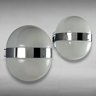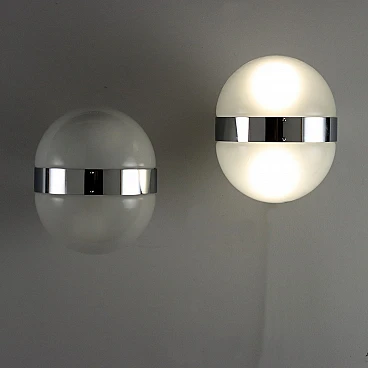 Pair of glass Clio wall light by S. Mazza for Artemide, 1970s