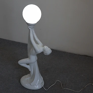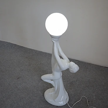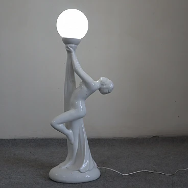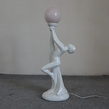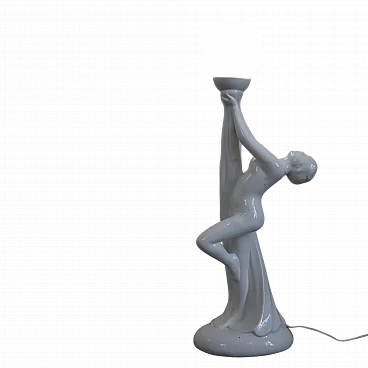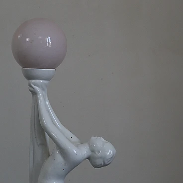 Transport your space to an era of charm and sophistication with this white porcelain Art Deco lamp, a masterpiece inspired by the distinctive style of Max Le Verrier and expertly crafted in Italy in the 1940s. This lamp embodies the timeless elegance of Art Deco, with its combination of geometric shapes, refined details and high-quality materials. The white porcelain gives a discreet and sophisticated elegance to the lamp, while the sinuous and rounded lines evoke the spirit of the era. With a height of 56cm and a base of 24x12cm, this lamp stands out with its imposing presence and impactful design, adding a touch of class and style to your living space. Every detail of this lamp tells a story of Italian craftsmanship and quality craftsmanship, reflecting the attention to detail and attention to design that characterized that golden era of design. The soft and enveloping lighting emitted by this lamp creates a welcoming and intimate atmosphere, perfect for creating a relaxed and elegant environment in any room of the house. Whether placed on a nightstand next to your bed, on a console in your entryway, or on a coffee table in your living room, this white porcelain Art Deco lamp adds a touch of vintage charm and sophistication to your space. Celebrate the art and style of the 1940s with this extraordinary lamp, an icon of elegance and sophistication that will be admired and appreciated for many years to come.