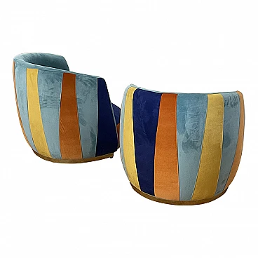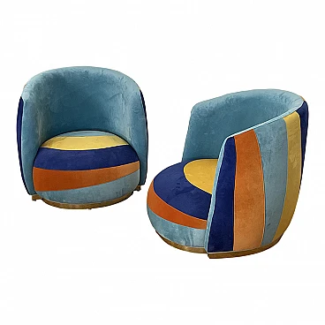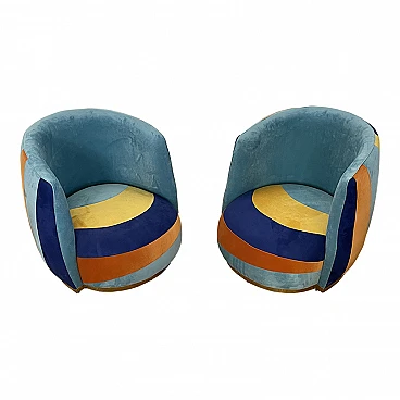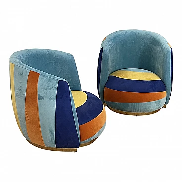 Pair of cockpit armchairs in coloured velvet, 1990s