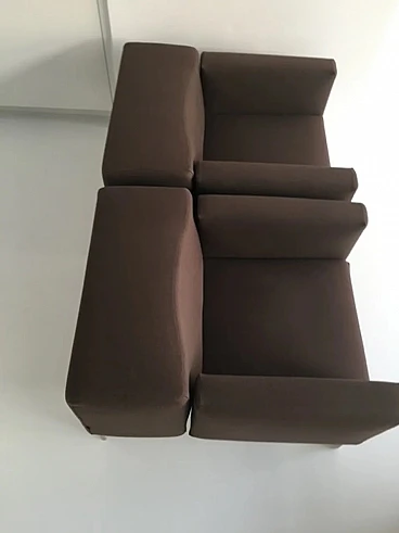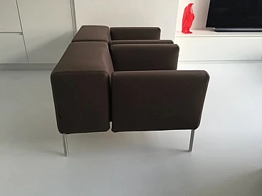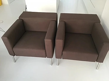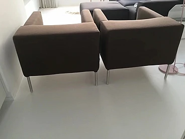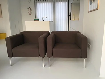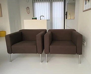 Pair of Moroso Armchairs, Springfield model by Spanish architect Patricia Urquiola in 2002. EXCELLENT CONDITION. Minimal signs of use. A type of armchair with generous dimensions, uncommon piece only a few were made. Rare, no longer in production. Cold-molded polyurethane padding, soft fabric cover. KVARD Brown COTTA wool and is removable with Velcro at the bottom. Aluminum frame with 4 die-cast tubular feet in gray. Moroso Springfield armchairs have been used but are in excellent condition. The armchairs are from 2015. Purchased for 6,000 euros. Dimensions: W 74 x D 93 H 62 x cm. Seat height 40 cm.