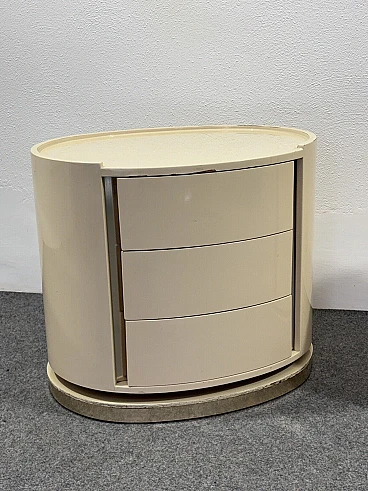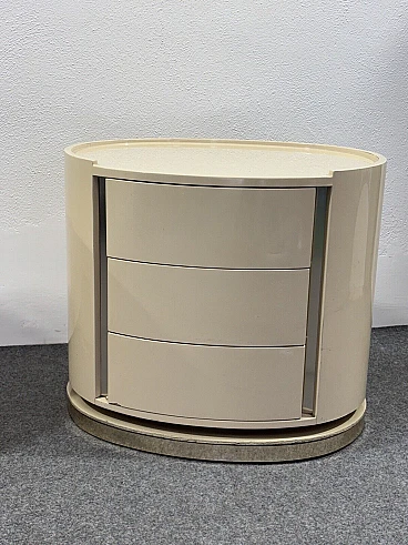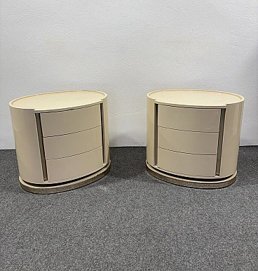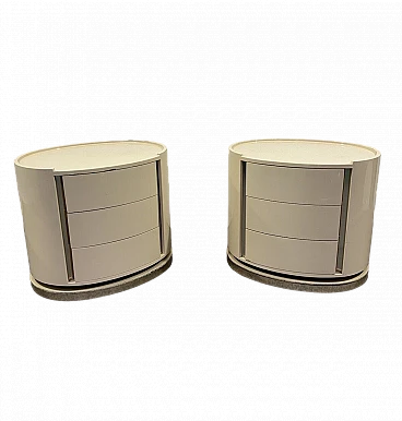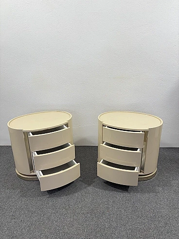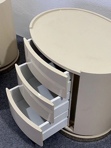 Pair of Space Age bedside tables in the style of Karl Springer, 1970s. Structure entirely in lacquered wood and chromed steel details. Good conservation condition, there are no structural defects to report, only signs of time due to use and age (see photos).