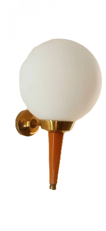 Glass, brass and orange metal wall light by Stilnovo, 1970s
