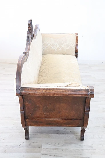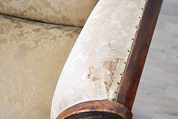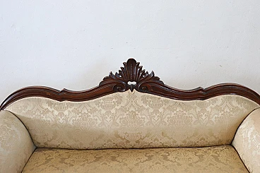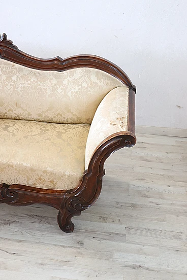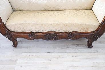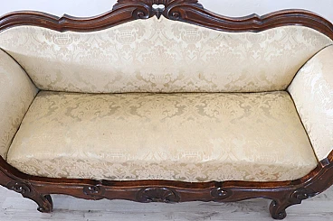 Hand-carved walnut wood sofa and brocade fabric, 19th century